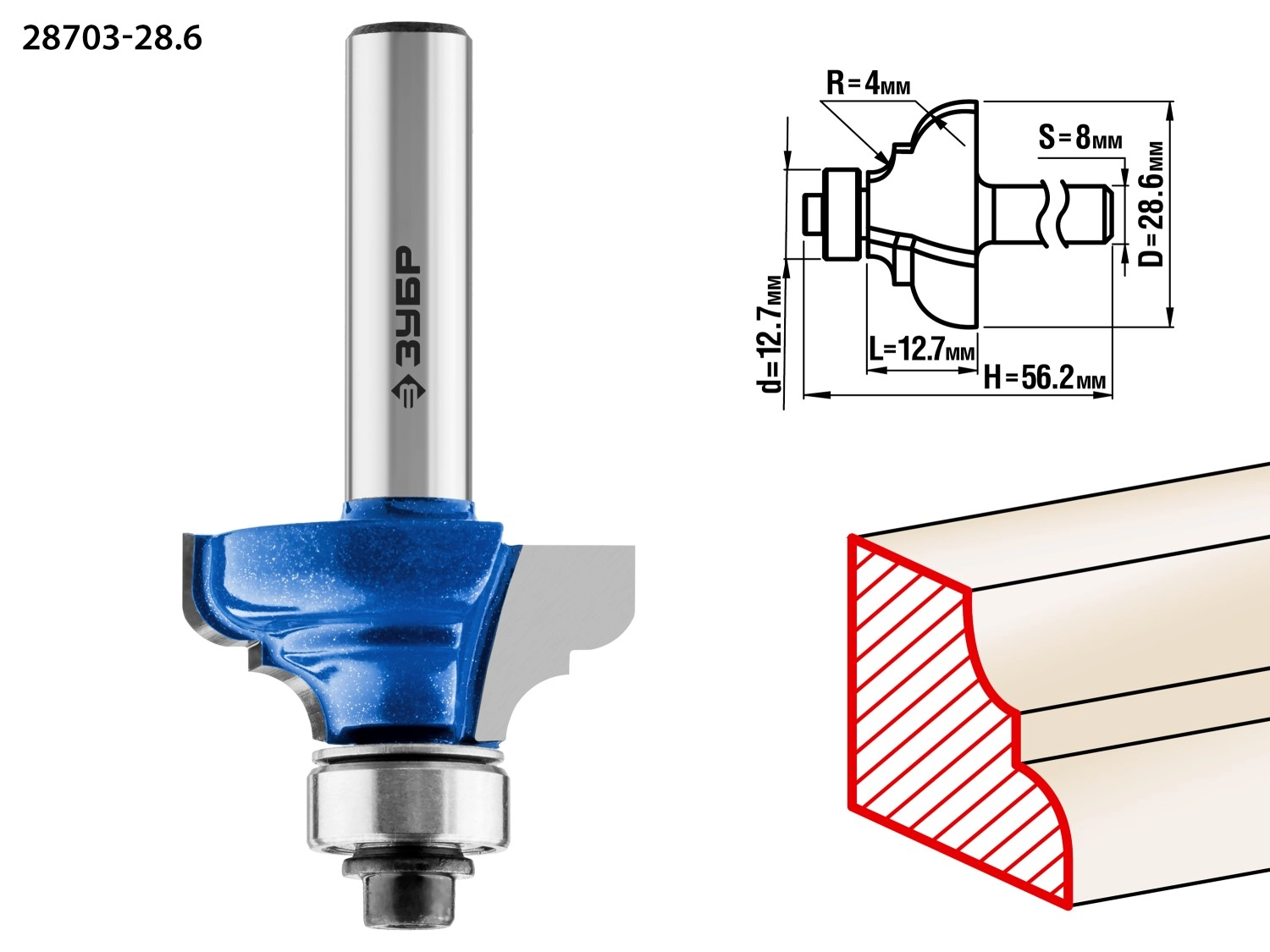 ПроизводителиФреза кром. калев. №3, D= 28,6мм, раб. дл.-12,7мм, рад.-4мм, хв.-8мм, d-12,7мм (28703-28.6) ЗУБР
