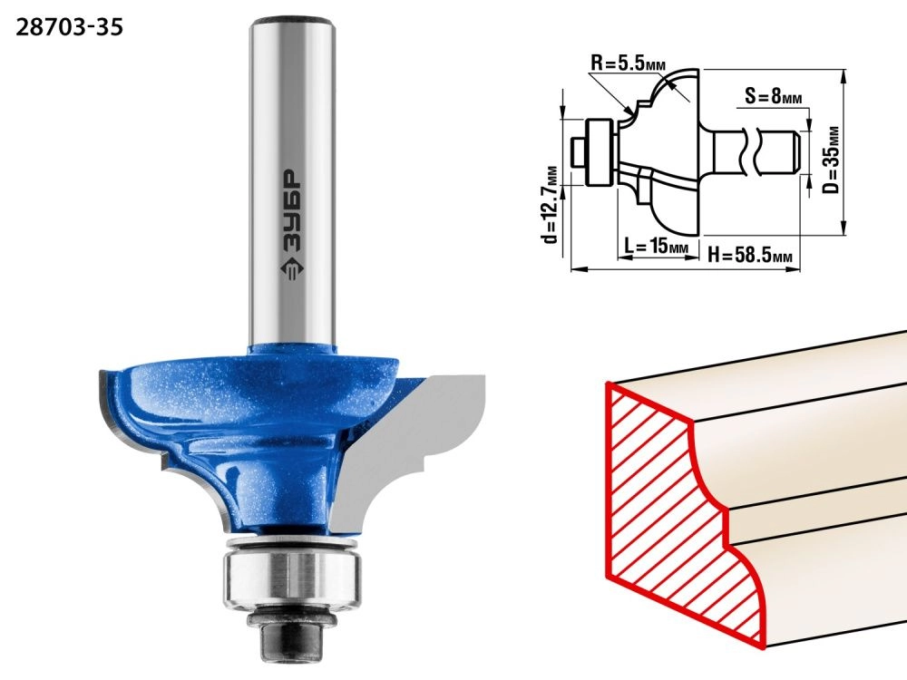 ПроизводителиФреза кром. калев. №3, D= 35мм, раб. дл.-15мм, рад.-5,5мм, хв.-8мм, d-12,7мм (28703-35) ЗУБР