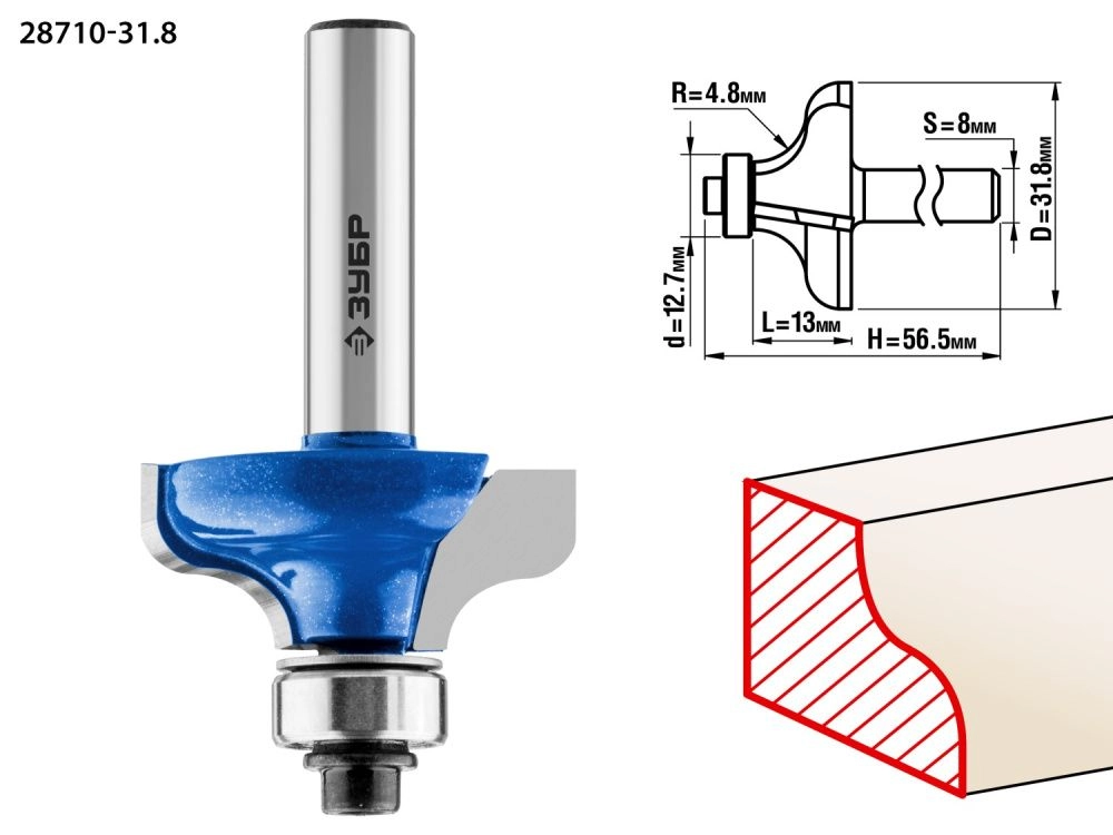 ПроизводителиФреза кром. калев. №8, D= 31,8мм, раб. дл.-13мм, рад.-4,8мм, хв.-8мм, d-12,7мм (28710-31.8) ЗУБР
