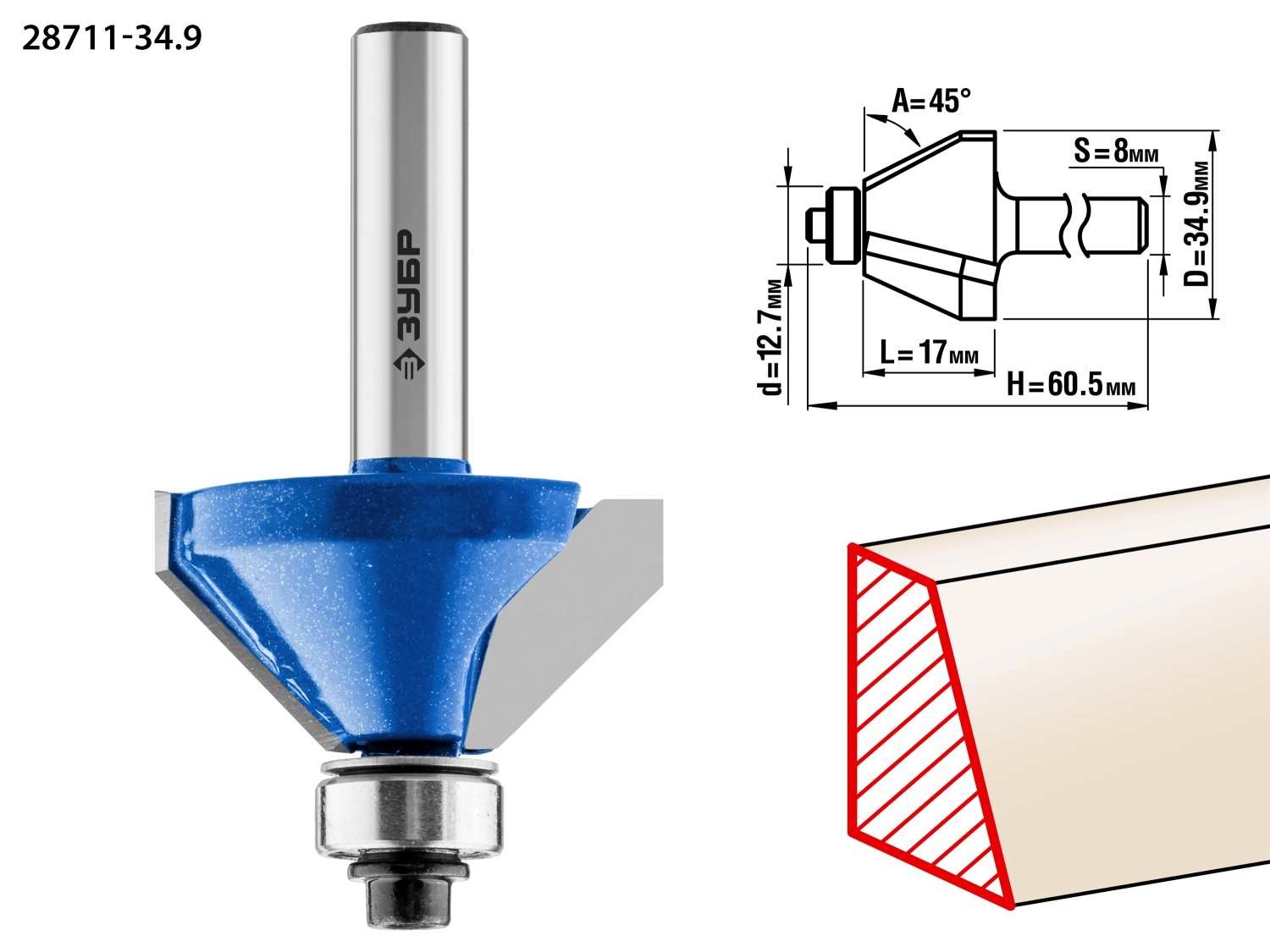 ПроизводителиФреза кром. калев.(фасочная) №9, D= 34,9мм, раб. дл.-17мм, хв.-8мм, d-12,7мм (28711-34.9) ЗУБР