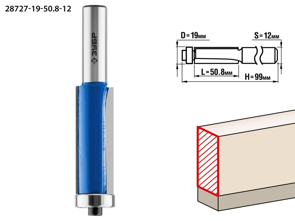 ПроизводителиФреза кром. с нижним подшип., D= 19мм, раб. дл.-50,8мм, хв.-12мм, d-19мм (28727-19-50.8-12) ЗУБР