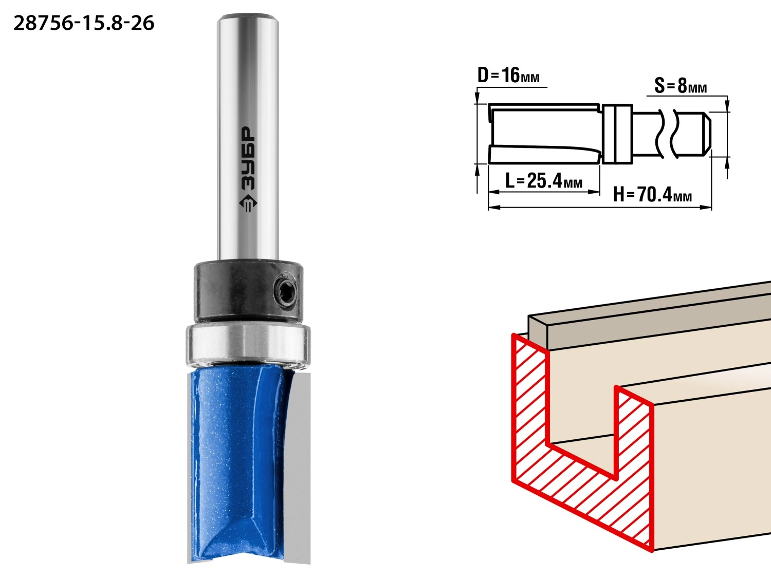ПроизводителиФреза паз. прямая с верх. подшип., D= 16мм, раб. дл.-25,4мм, хв.-8мм, d-15,8мм (28756-15.8-26) ЗУБР