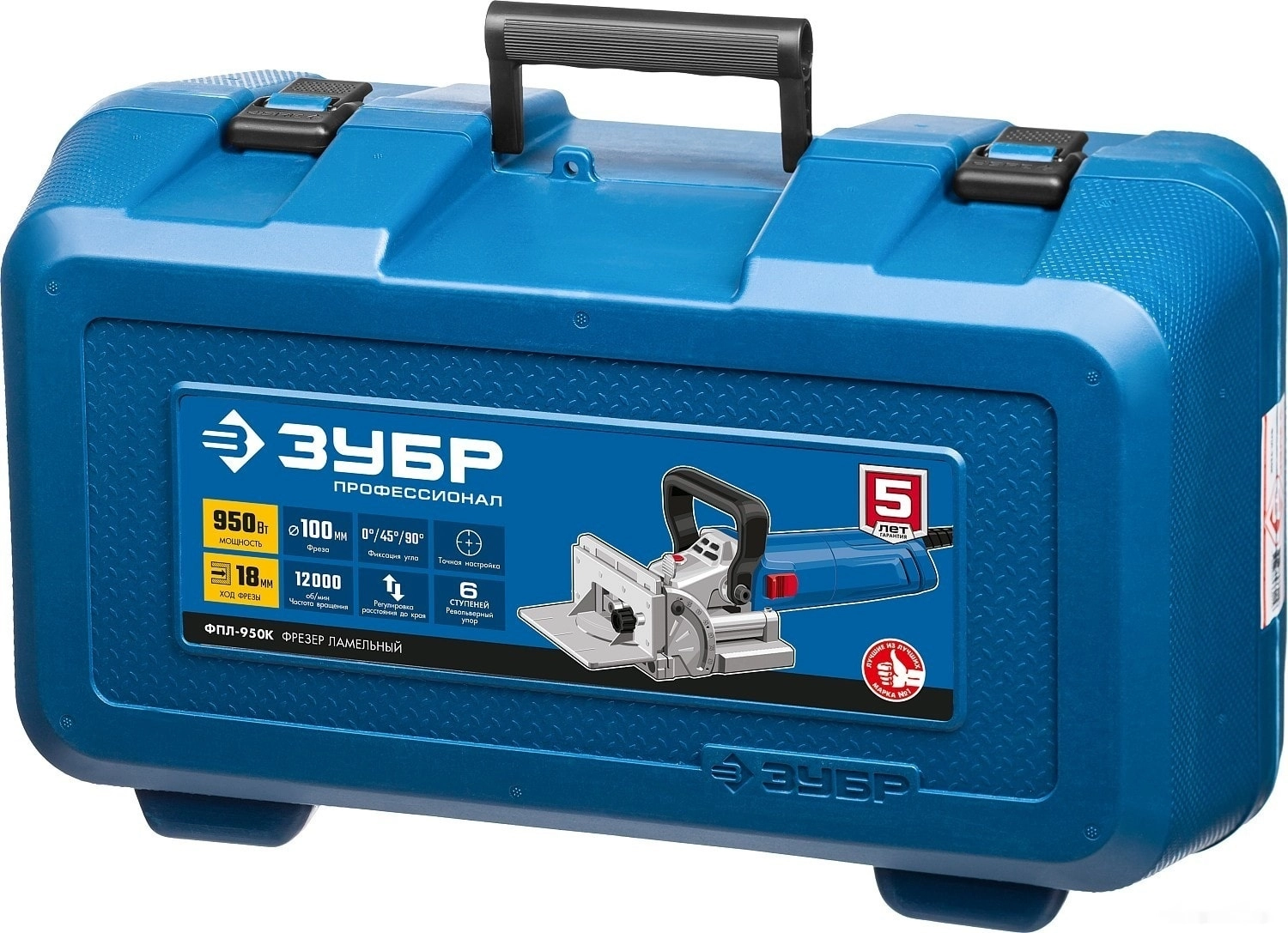 ХарактеристикиАртикул ФПЛ-950КБренды ЗубрСтрана производства КитайТип шпоночный (ламельный)Потребляемая мощность 950Число оборотов холостого хода #REF!Длина сетевого шнура 3Кейс в комплекте нетПодсветка рабочей зоны нетВес 3Частота вращения (холостой ход) 12000Рабочий ход (глубина) 18Револьверный механизм есть"Константная" электроника нетПодключение к пылесосу естьПлавный пуск двигателя нетКопировальная втулка нетЦентрирующий штифт нетКлючи естьПараллельный упор нетКейс естьПылесборник естьРегулировка оборотов НетОписание товара обновлено 08.12.2025 13:49:27Ламельный фрезер ЗУБР ФПЛ-950К, предназначен для формирования линейных пазов для обеспечения ламельного соединения деревянных конструкций. Литая алюминиевая поворотная линейка обеспечивает бОльшую точность выпиливания. Возможность точной настройки и использования фиксированных значений глубины обработки в пределах от 0 до 18 миллиметров. Выпиливание под углом с фиксированными положениями в 45 и 90 градусов. Удобная дополнительная рукоятка фрезера для надежной фиксации и повышенной точности. Прецизионный реечный механизм для настройки вертикальной рейки в пределах 40 мм. Функция блокировки шпинделя способствует удобной и быстрой замене расходного инструмента. Мешок для сбора пыли в комплекте. Удобный кейс для хранения и переноски.