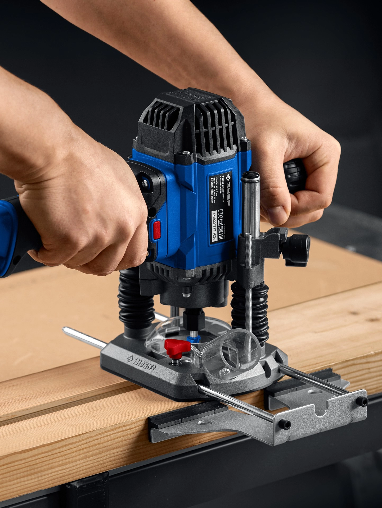 Фрезер универсальный ЗУБР ФПР-1280, предназначен для вырезания фигурных и прямых пазов, выборки четвертей, закругления кромок, снятия фасок, профилирования поверхностей и многих других сложных задач. Имеется удлиненная рукоятка для большей маневренности и возможности работы одной рукой. Диаметральное расположение стоек увеличивает жесткость конструкции и, соответственно, точность обработки. Электронная регулировка частоты вращения для выбора оптимальных условий под любую работу. Яркая LED подсветка обеспечивает удобство при работе.Производитель: Крафтул И/Е Гмбх, Альтер Поствег Штр., Лоенинген, Германия