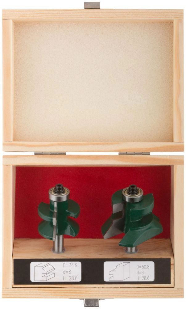 ПроизводителиФрезы по дереву для вагонки, набор 2 шт., деревянный бокс, DxH=50,8/34,9х28,6 мм (F_36569) FIT