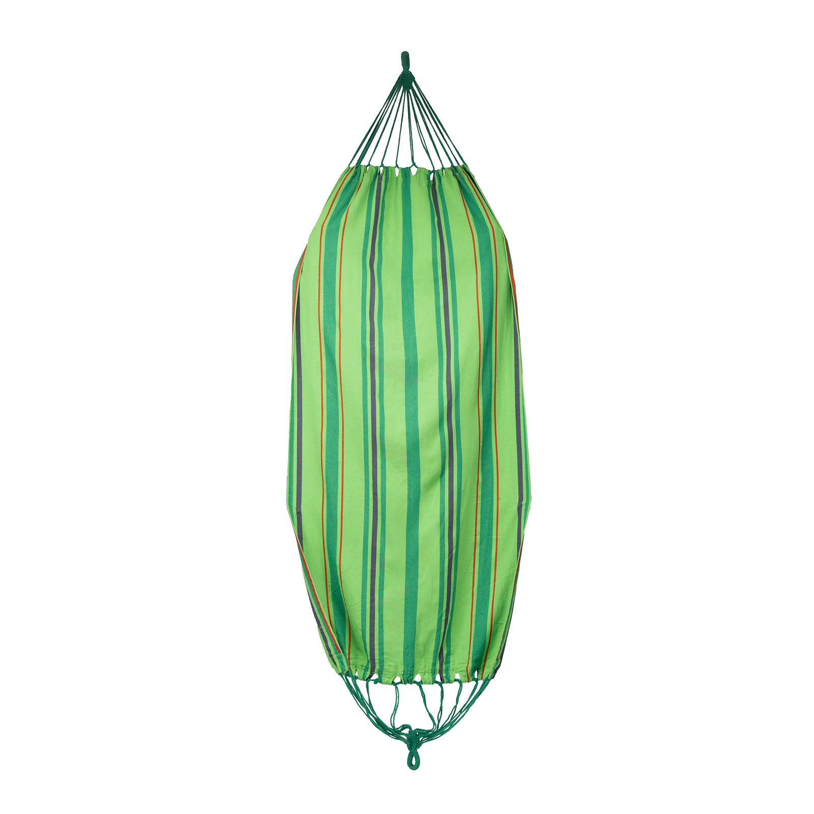Гамак изготовлен из 100% хлопка, а значит, экологически безопасен и позволяет телу дышать.