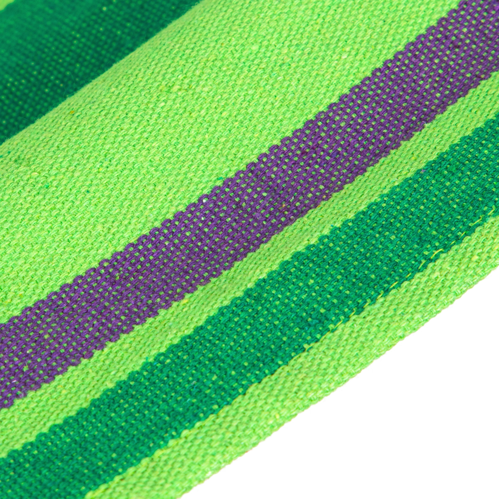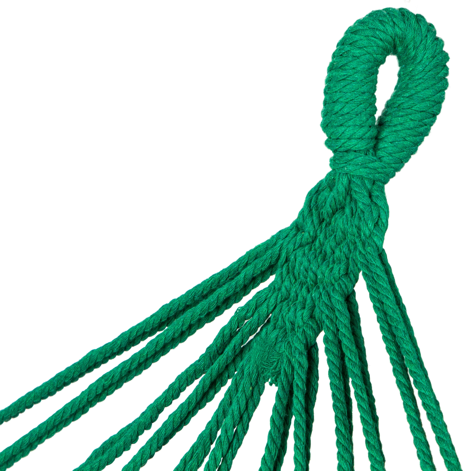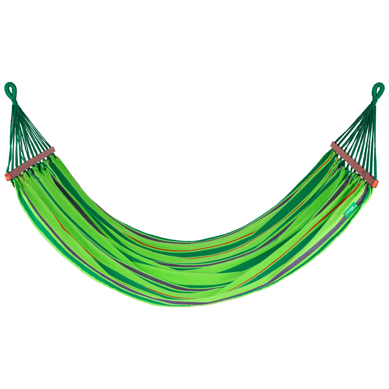 Гамак изготовлен из 100% хлопка, а значит, экологически безопасен и позволяет телу дышать.