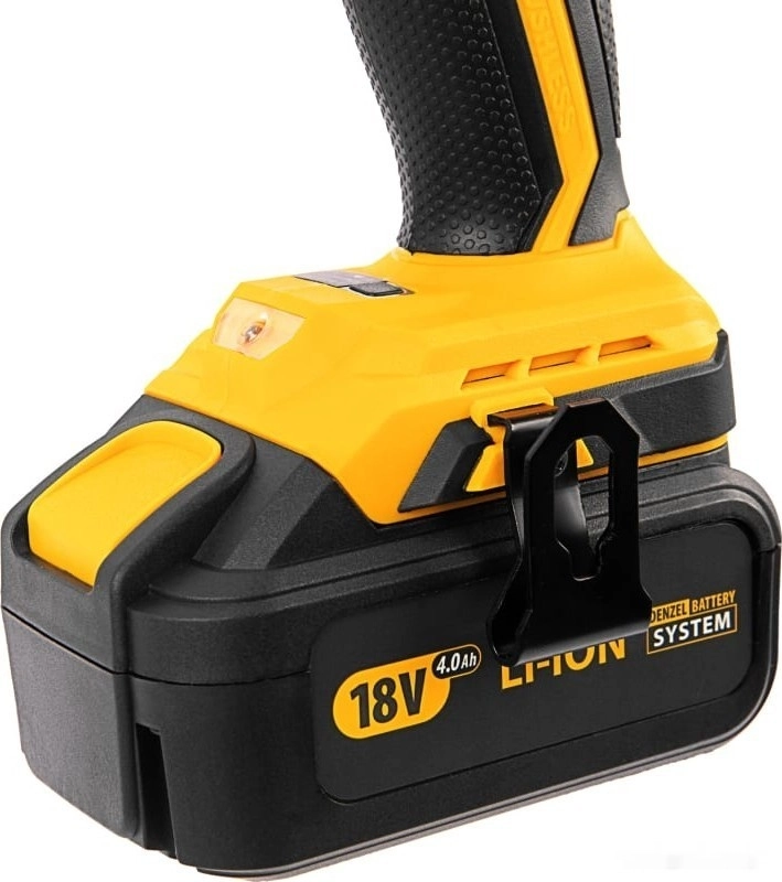 - Универсальность — к инструменту подойдут любые 18 В аккумуляторы Denzel battery system.