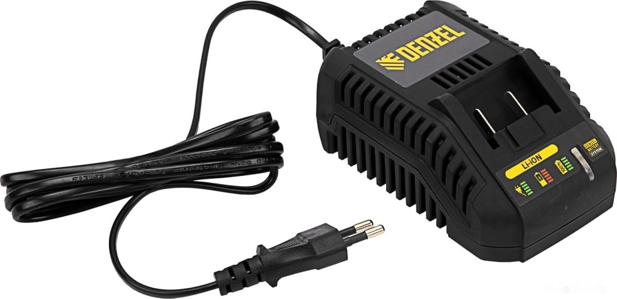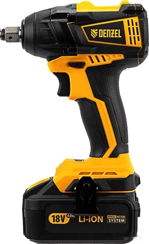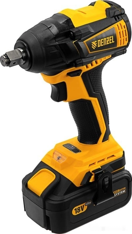 - Универсальность — аккумулятор 4 А/ч Li-ion совместим с любым инструментом 18V Denzel battery system серии IB.