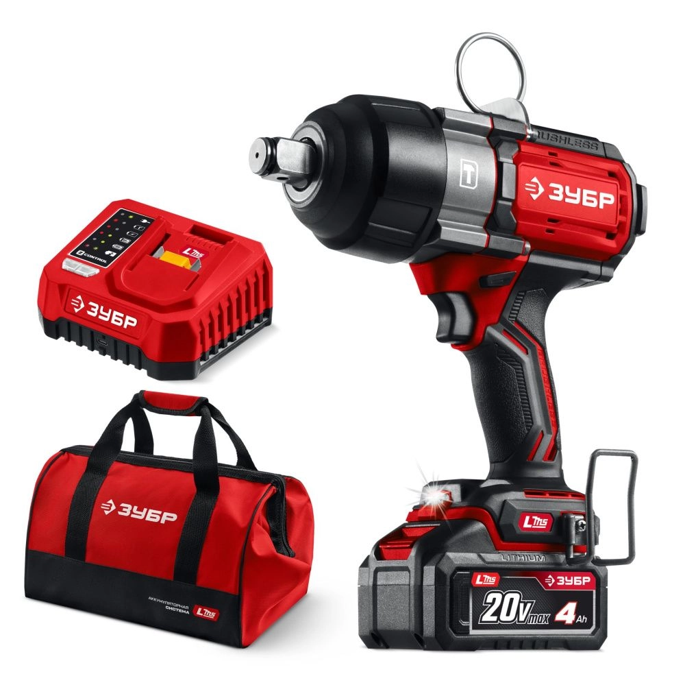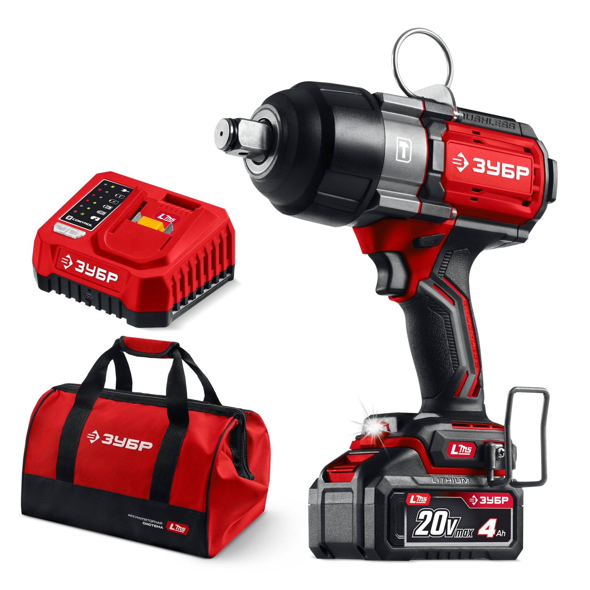 ПроизводителиГайковерт ударный аккум. ГБУ-1000-41 (LMS) (20.0 В, 1 акк. х 4 A/h Li-Ion, 3/4, 1000 Нм, сум.) ЗУБР