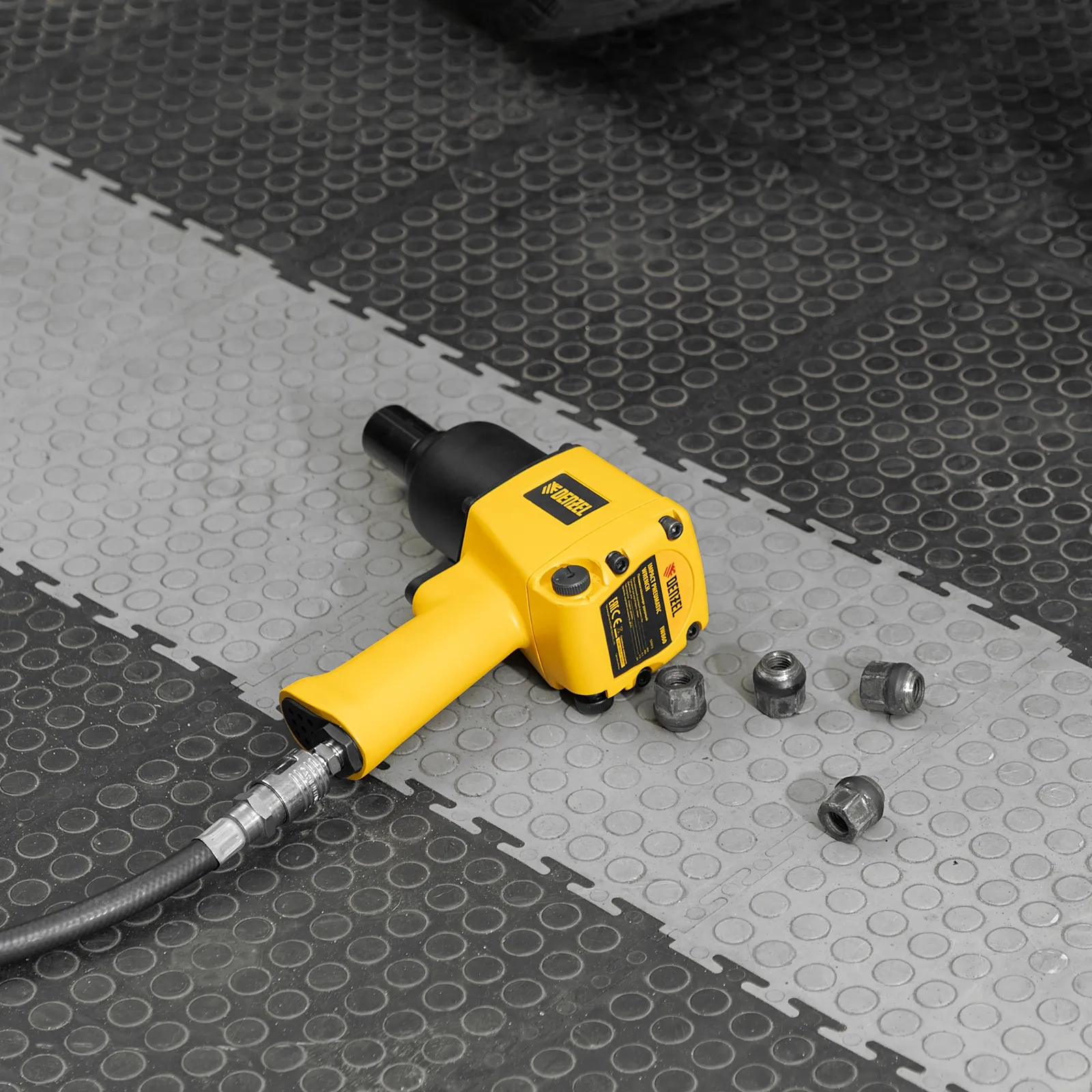 Простая подготовка к работе — гайковерт подключается к компрессору при помощи быстроразъемного соединения.