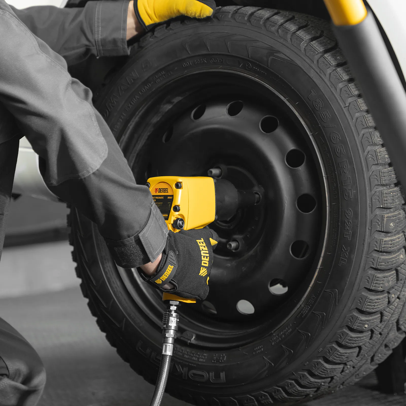 ПроизводителиГайковерт ударный пневм. IW860+набор головок, 1/2", 7000 об/мин, 868 Нм Denzel