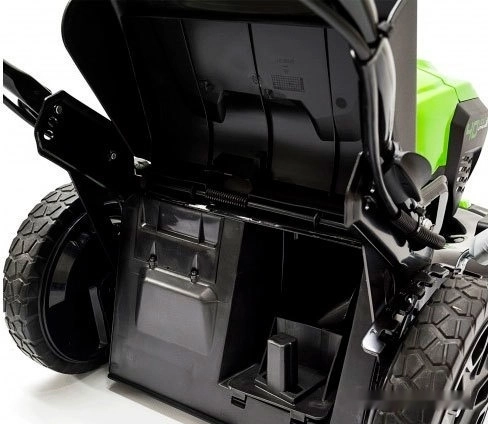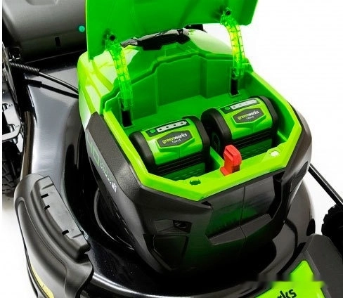 ХарактеристикиАртикул 2506807Бренды GreenWorksСтрана производства КитайГарантия 12 месяцевТип аккумуляторнаяШирина скашивания 46Емкость аккумулятора 6Предохранительная муфта ДаВес 29Материал колесных дисков пластикДвигатель аккумуляторныйСамоходная естьОбъём травосборника 55Мульчирование естьМатериал деки стальТип скашивания выброс травы, мульчирование, сбор в травосборникТравосборник мягкийКоличество колес 4Возможность мульчирования естьРабота от аккумулятора естьМин. Высота скашивания 25Макс. Высота скашивания 80Описание набора Газонокосилка аккумуляторная G-MAX 40V GREENWORKS GD40LM46SP - 1 шт. Аккумулятор 6 А/ч - 1 шт. Зарядное устройство - 1 шт. Мешок для сбора травы объемом 55 л- 1 шт. Заглушка для мульчирования - 1 шт. Руководство пользователя УпаковкаШирина обработки 46Количество уровней высоты обработки 7Описание товара обновлено 08.12.2025 14:44:17Бесщеточная самоходная аккумуляторная газонокосилка Greenworks GD40LM46SP 40 В, с 1 АКБ 4 А*ч и ЗУ 2506807UB используется для кошения газонной травы.
