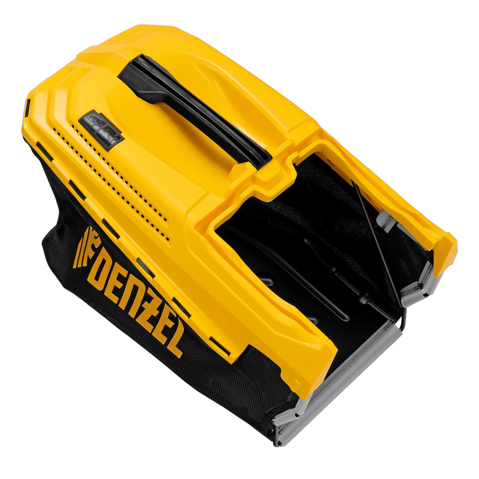 Объемный травосборник на 60 литров с индикатором заполнения : частое опустошение не требуется, очистка облегчена, а прочность изделия повышена за счет комбинации тканевого материала и пластика.