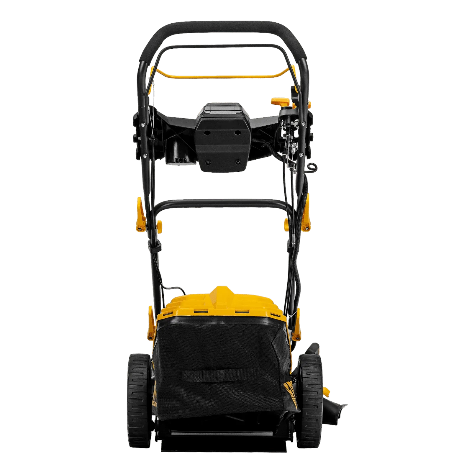 Комплектация: Газонокосилка в сборе с ножом и колесами - 1 шт, Травосборник - 1 шт, Дефлектор бокового выброса -1 шт, Нижняя часть рукоятки - 1 шт, Верхняя часть рукоятки - 1 шт, Комплект крепежа - 1 шт, Ключ свечной - 1 шт, Фиксатор троса - 1 шт, Заглушка для мульчирования - 1 шт, Аккумулятор - 1 шт, Зарядное устройство - 1 шт, Руководство по эксплуатации с гарантийным талоном - 1 шт