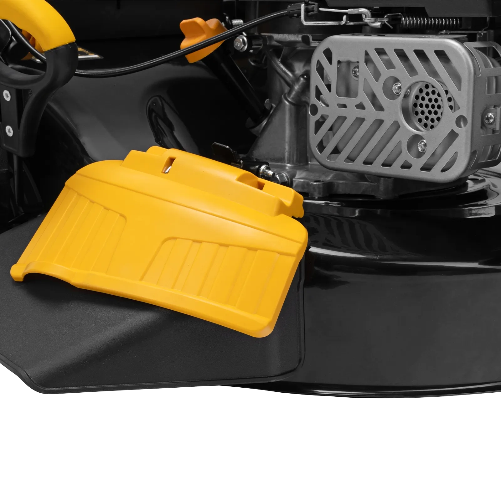 - Удобный сбор скошенной травы — комбинированный травосборник объемом 60 л быстро очищается и не нуждается в частом опустошении.