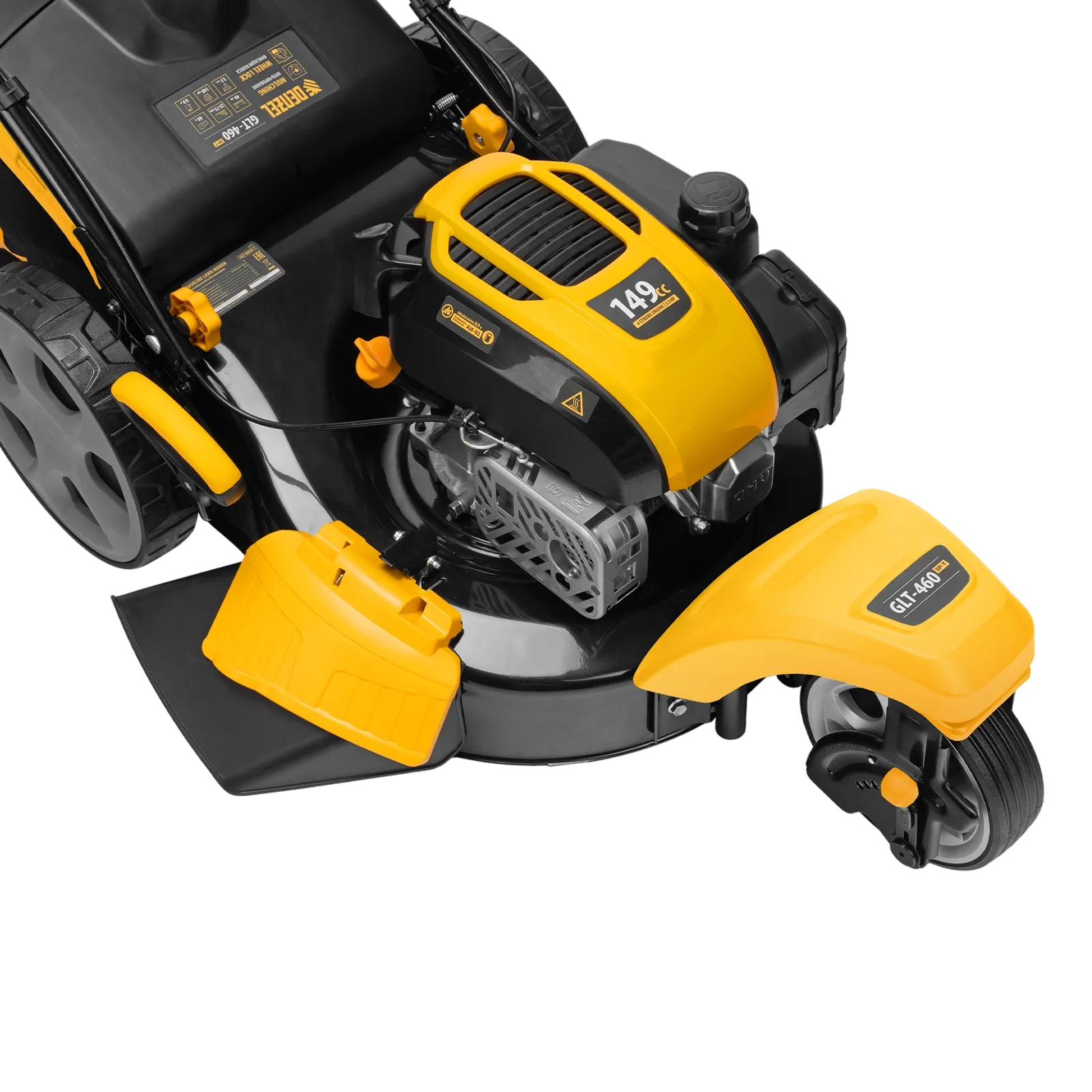 ПроизводителиГазонокосилка бенз GLT-460SP-T, Trike 150 см3, 46 см, привод, панель, 60л Denzel