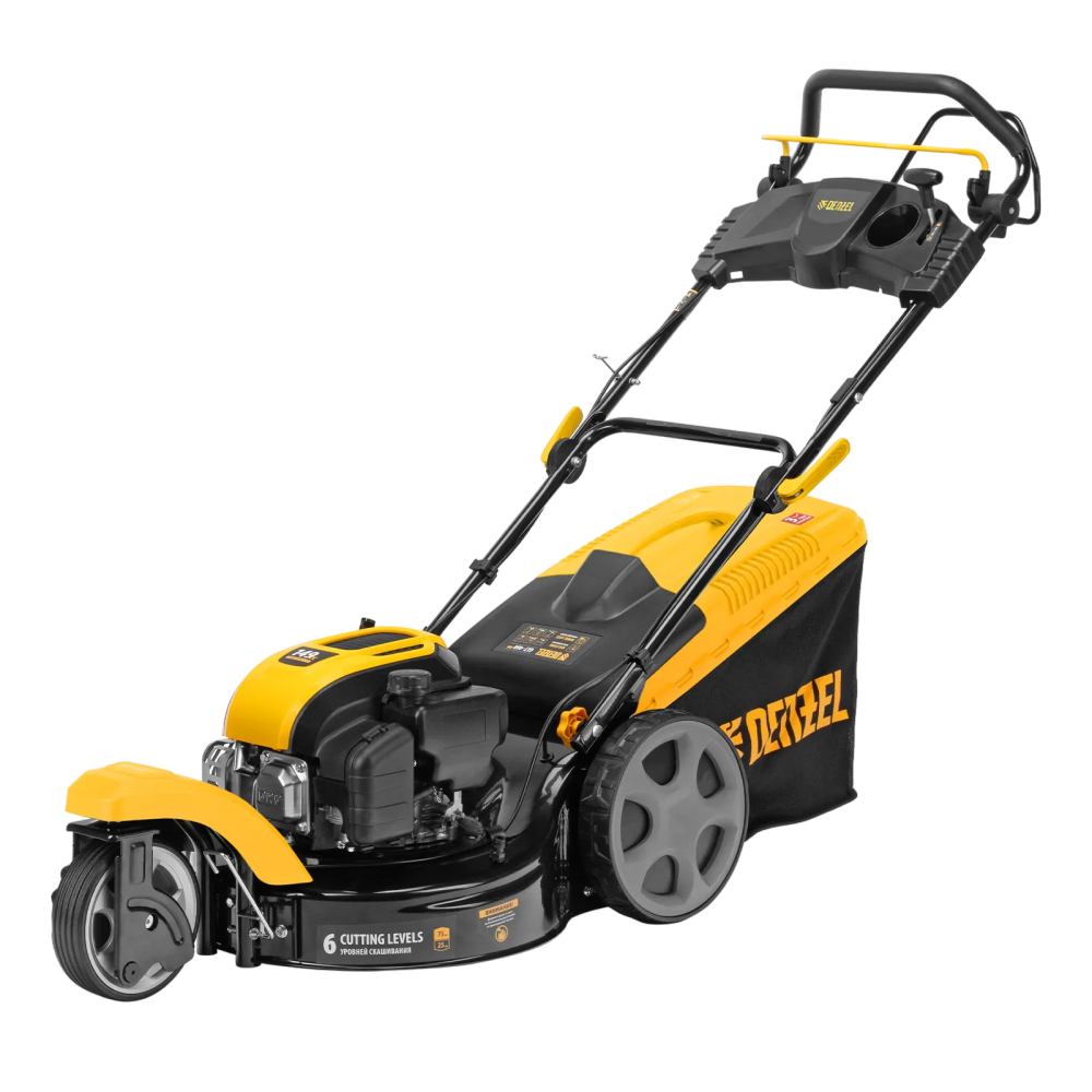 - Привод на колеса — можно с легкостью направлять газонокосилку, не толкая ее.