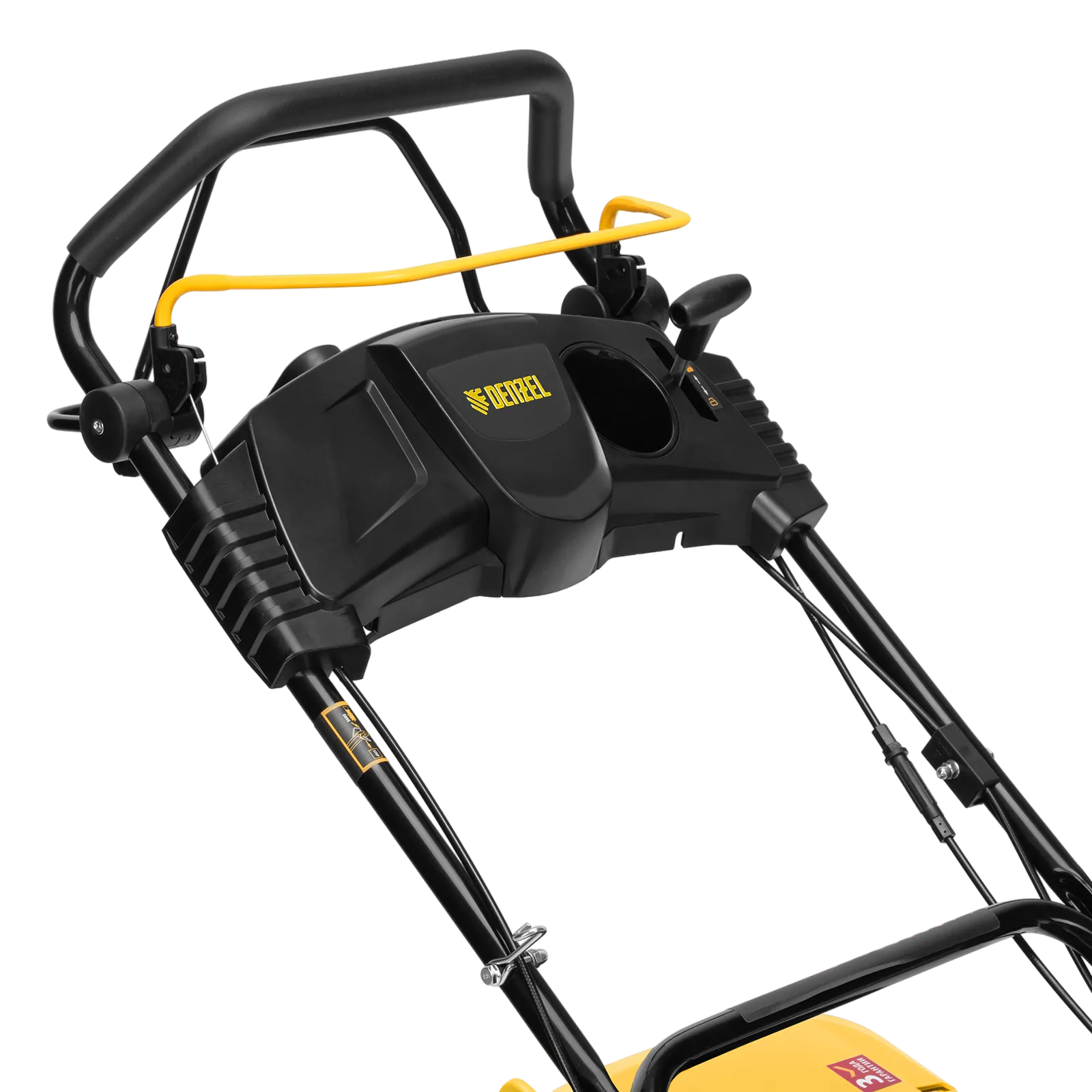 - Комфортная работа — угол наклона рукоятки регулируется в соответствии с ростом пользователя, на панели управления предусмотрен подстаканник, поэтому можно не расставаться с любимым напитком во время кошения.