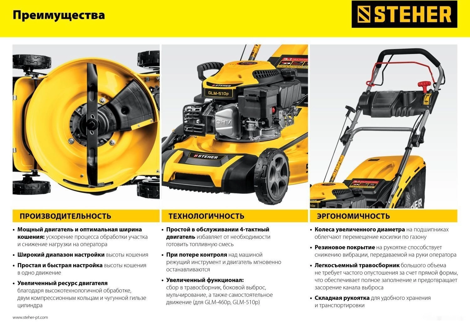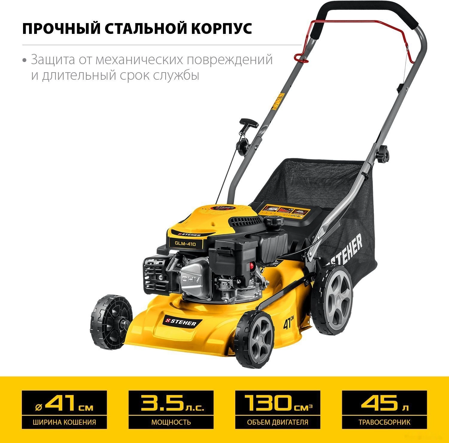 ПроизводителиГазонокосилка бензиновая GLM-410, 410 мм, 3.5 л.с. STEHER