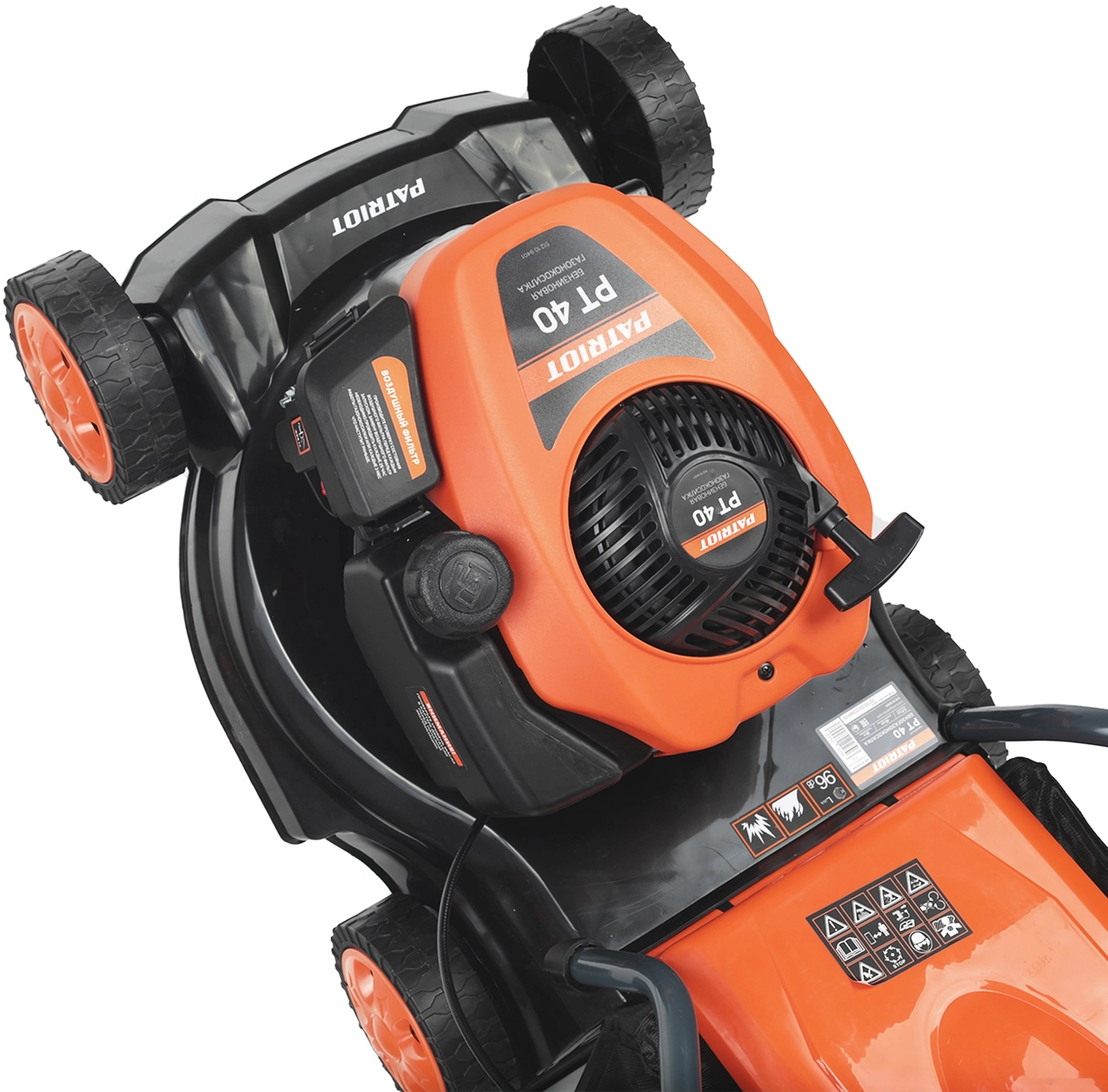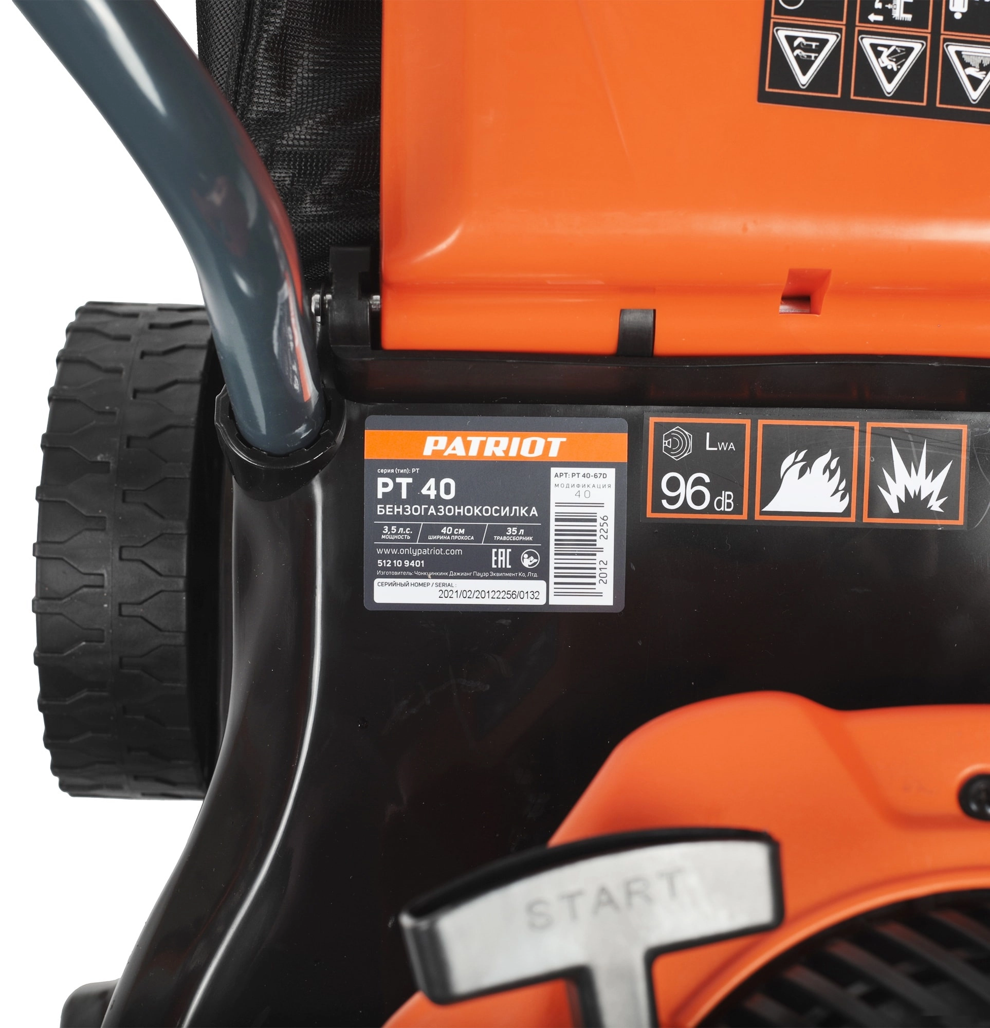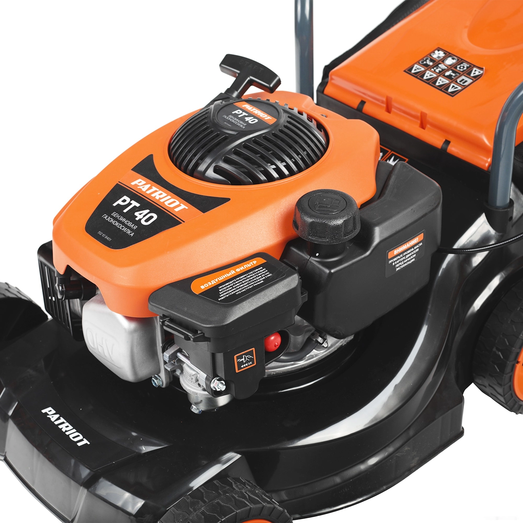 ЭКОНОМУровень качества. При классификации продуктов, имеющих схожее наименование, но обладающие различными потребительскими свойствами мы приняли следующий Вес факторов: 80% - подтвержденный ресурс, 15% - заявленная производительность/скорость, 5% - субъективные ощущения потребителя. ПодробнееКод товара: 0062382ХарактеристикиАртикул 512109401Бренды PATRIOTСтрана производства КитайГарантия 24 месяцевГабариты (ШхВхГ),мм 360х650х460Тип бензиноваяПотребляемая мощность 2600Самоходная нетМульчирование нетОбъем топливного бака, л 1Мощность, л.с. 3.5Ширина скашивания 40Высота травы после стрижки, мм (мин-макс) 30-65Объём двигателя 130Двигатель/Тактность 4-х тактныйОбъем травосборника, л 35Режущий элемент ножТип ручки СкладнаяОбъем масляного бака, л 0.4Тип топлива бензин АИ-92Колеса 152/152ммТравосборник естьРегулировка высоты осевая/3 режимаВыброс травы заднийЗаглушка для мульчирования нетШтуцер для промывки деки нетПанель с подставкой под стакан нетСтартер ручнойСвеча зажигания F6TCВес 16Материал колесных дисков пластикМощность двигателя 3.5Двигатель бензиновыйСамоходная нетЕмкость топливного бака 1Объём травосборника 35Мульчирование нетТип скашивания сбор в травосборникТравосборник мягкийУровень шума 96Количество колес 4Возможность мульчирования нетРабочий объём двигателя 130Мин. Высота скашивания 35Макс. Высота скашивания 65Ширина обработки 40Описание товара обновлено 08.12.2025 15:11:45Мощная бензиновая газонокосилка РТ 40 с изменяемой высотой скашивания предназначена для срезания и сбора травы на ровной площади малых и средних приусадебных участках. Газонокосилку отличает легкий запуск, высокая производительность и простота в обслуживании. Складная рукоятка, съёмный травосборник и компактный размер позволяют легко транспортировать и хранить газонокосилку.Производитель: 11th Flooor,LiYuanShangdu Building A2,201# LanTian Road,NingBo China