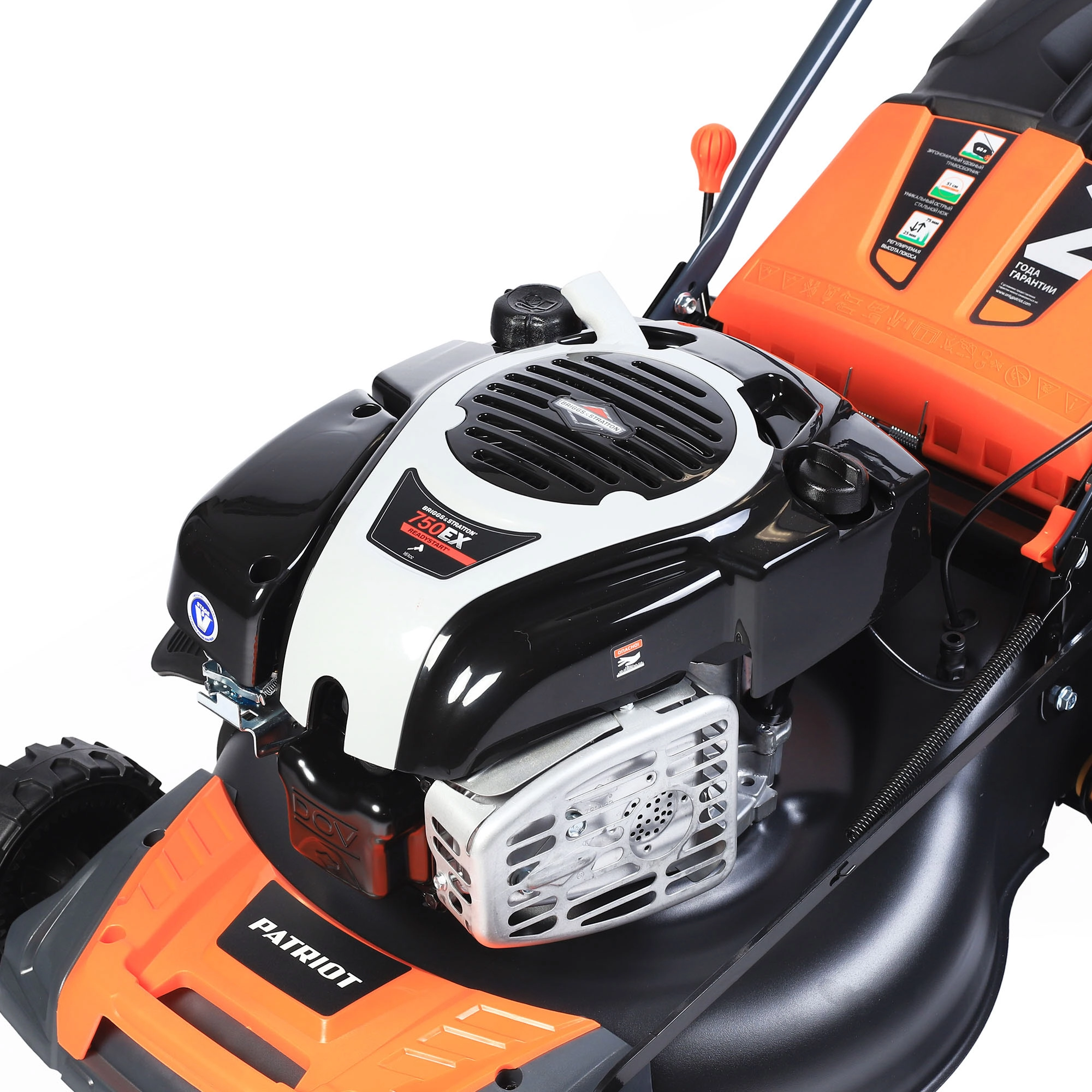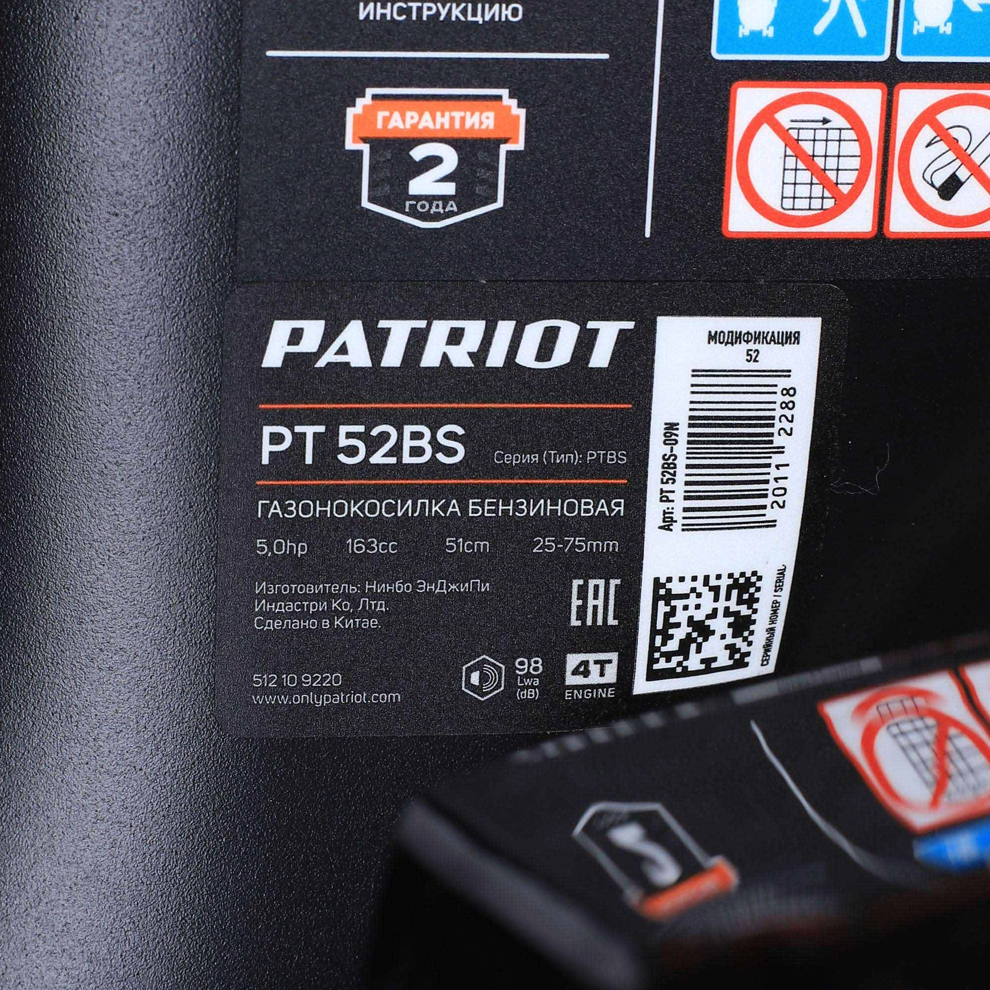 ПРОФИУровень качества. При классификации продуктов, имеющих схожее наименование, но обладающие различными потребительскими свойствами мы приняли следующий Вес факторов: 80% - подтвержденный ресурс, 15% - заявленная производительность/скорость, 5% - субъективные ощущения потребителя. ПодробнееКод товара: 0062379(0)ХарактеристикиАртикул 512109220Бренды PATRIOTСтрана производства КитайГарантия 12 месяцевГабариты (ШхВхГ),мм 530х860х580Потребляемая мощность 3670Самоходная даМульчирование естьУровень звукового давления, дБ(A) 96Объем топливного бака, л 1Мощность, л.с. 5Ширина скашивания 51Высота травы после стрижки, мм (мин-макс) 25-75Число скоростей вперед 1Объём двигателя 161Двигатель/Тактность 4-х тактныйОбъем травосборника, л 60Режущий элемент ножТип ручки СкладнаяОбъем масляного бака, л 0.47Тип топлива бензин АИ-92Колеса 203/279ммТравосборник естьРегулировка высоты центральная/7 режимовРегулировка скорости нетВыброс травы задний/боковойЗаглушка для мульчирования естьШтуцер для промывки деки естьПанель с подставкой под стакан естьСтартер ручнойСвеча зажигания QC12YCВес 32.88Мощная бензиновая газонокосилка РТ 52 BS на базе двигателя Briggs & Stratton 750EX Series с изменяемой высотой скашивания. Возможна работа в трех режимах: сбор травы в травосборник, боковой выброс травы, режим мульчирования (в комплекте приспособление для мульчирования).