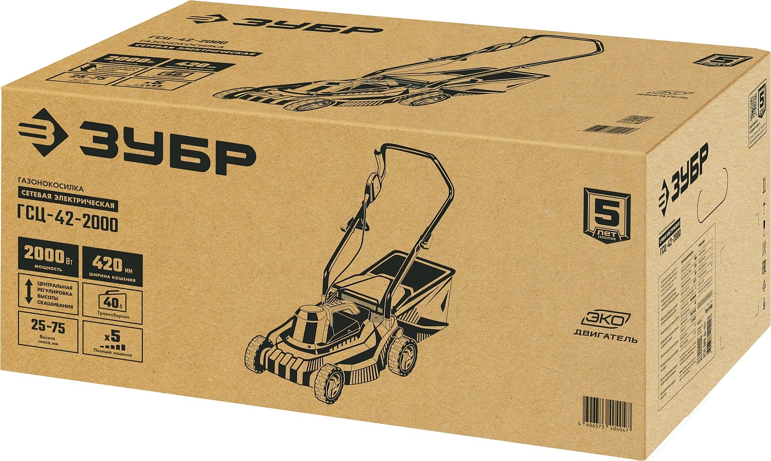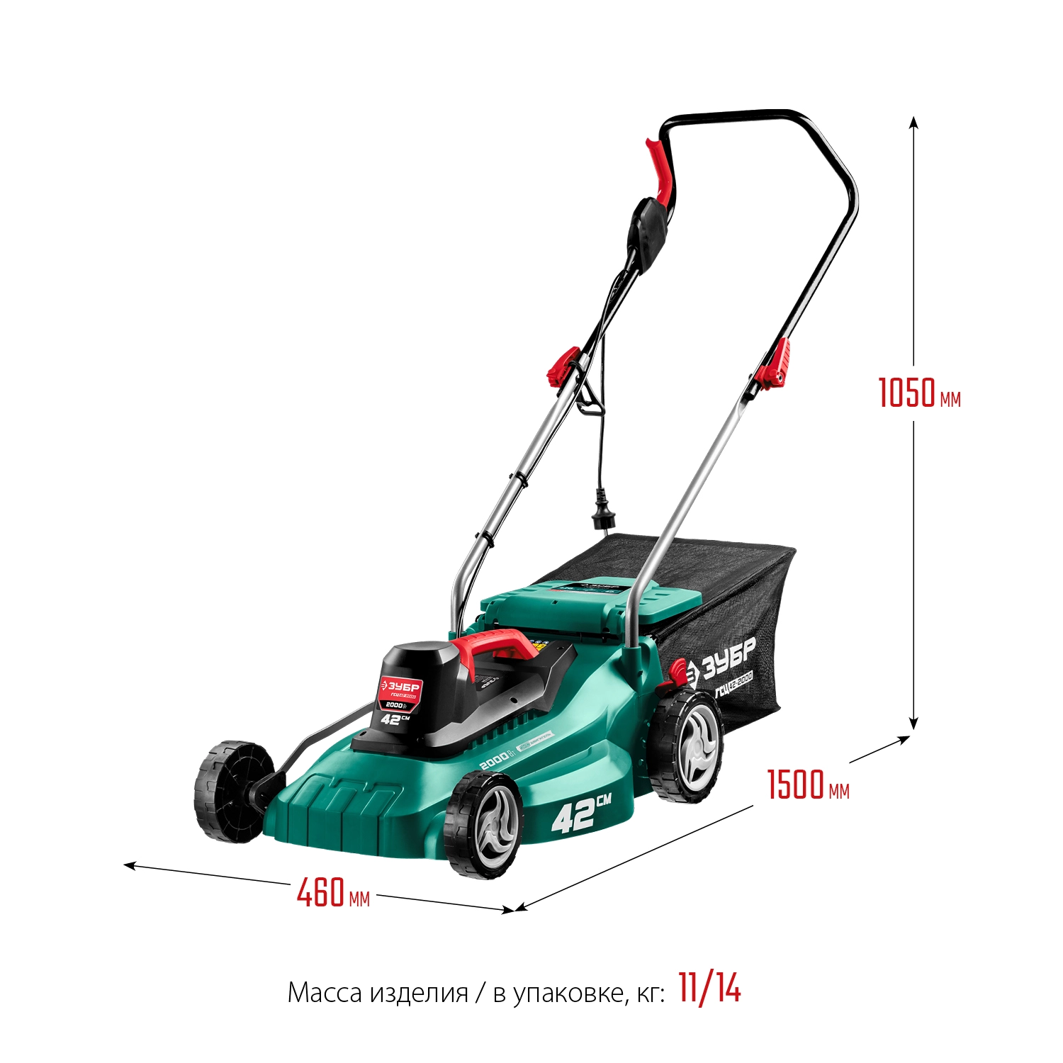 ПроизводителиГазонокосилка сетевая ГСЦ-42-2000 (2000 Вт, ш/с 42 см) ЗУБР