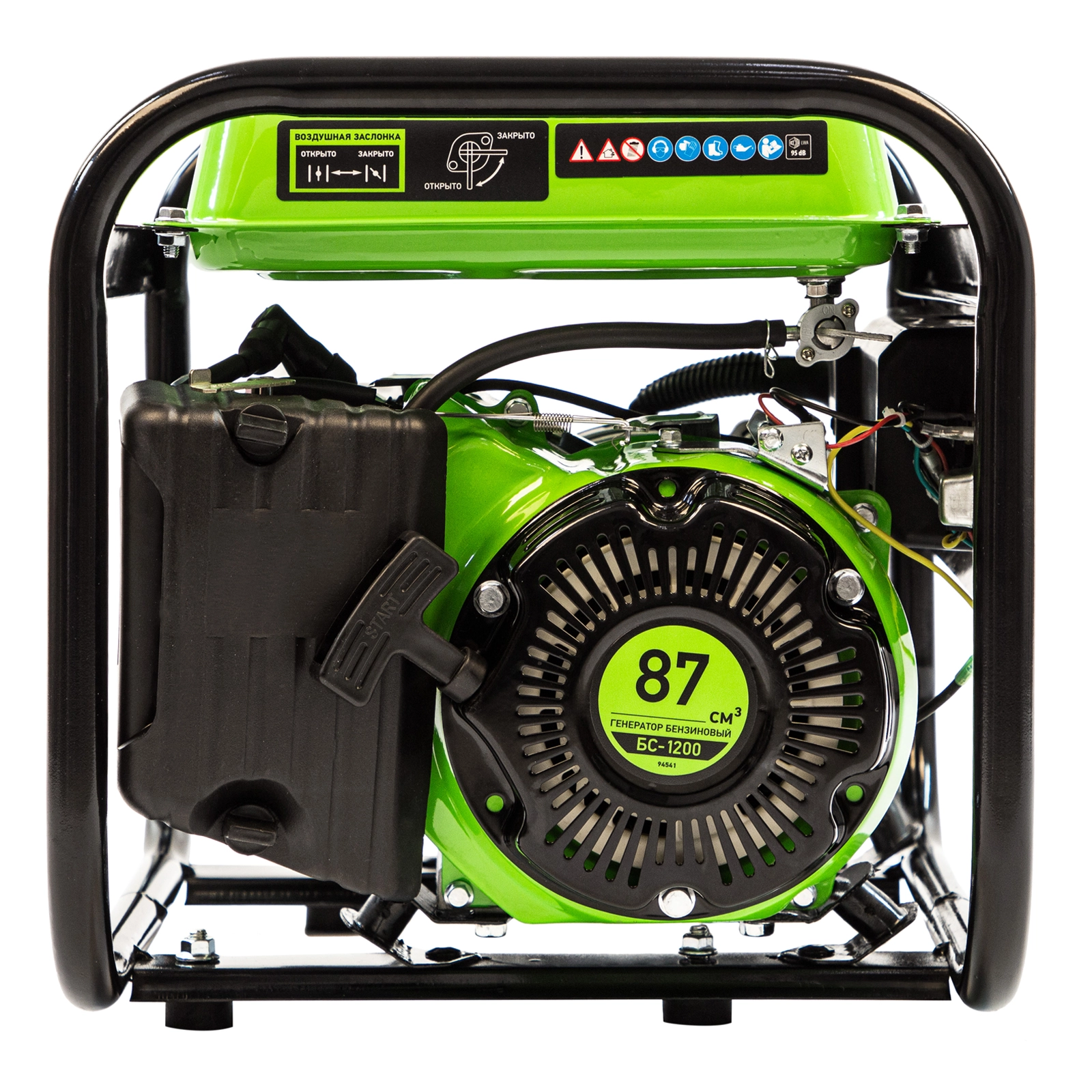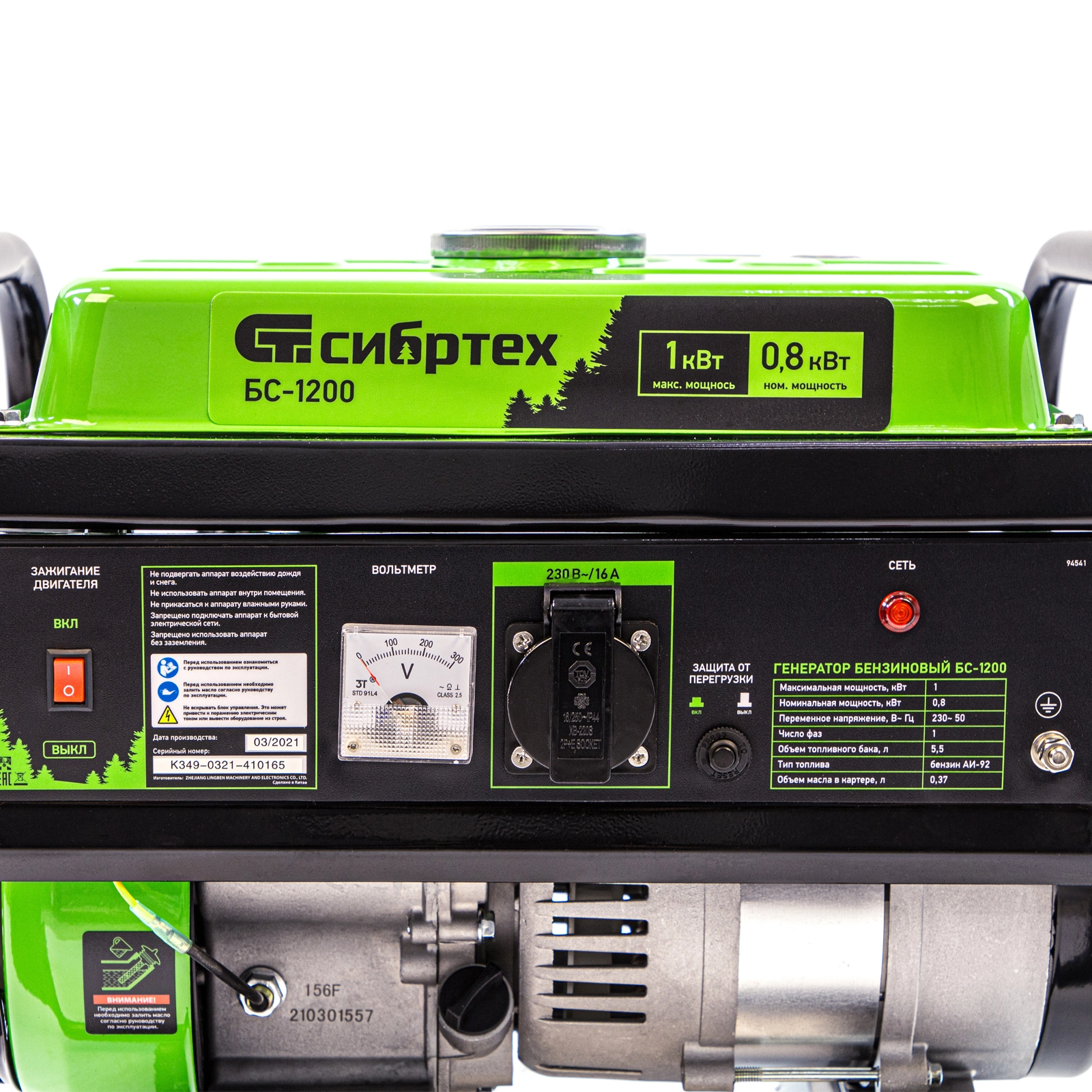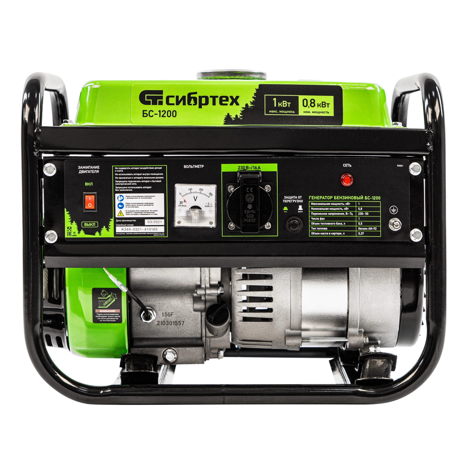 Бензиновый генератор Сибртех БС-1200 94541 на 230 В, максимальной мощностью 1 кВт, с 4-тактным двигателем, с баком на 5,5 л и ручным стартером, может использоваться в качестве простой резервной системы электроснабжения на природе, в мастерской или на даче.