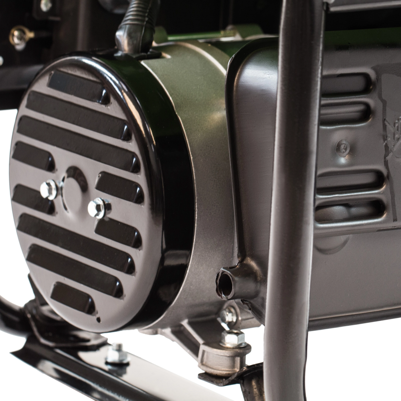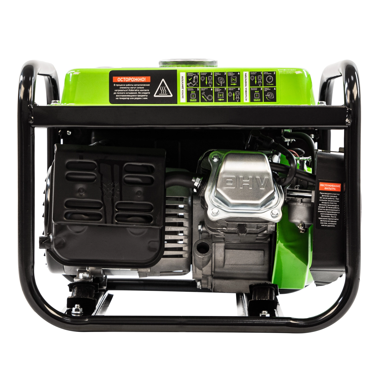 Прочная конструкция — стальная рама защищает генератор от повреждений, а ее верхние элементы можно использовать как ручки для транспортировки.