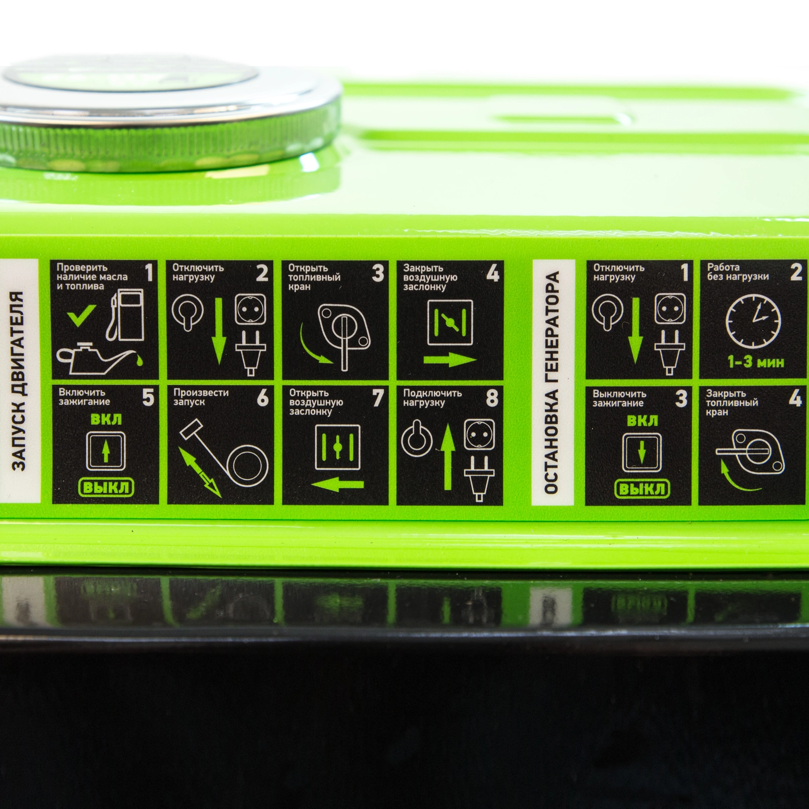 Контроль рабочих параметров — встроенный вольтметр позволяет отслеживать напряжение в сети, а топливный индикатор — уровень бензина в баке.