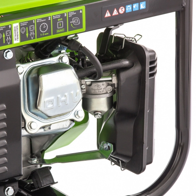 Прочная конструкция — стальная рама надежно защищает генератор от повреждений.