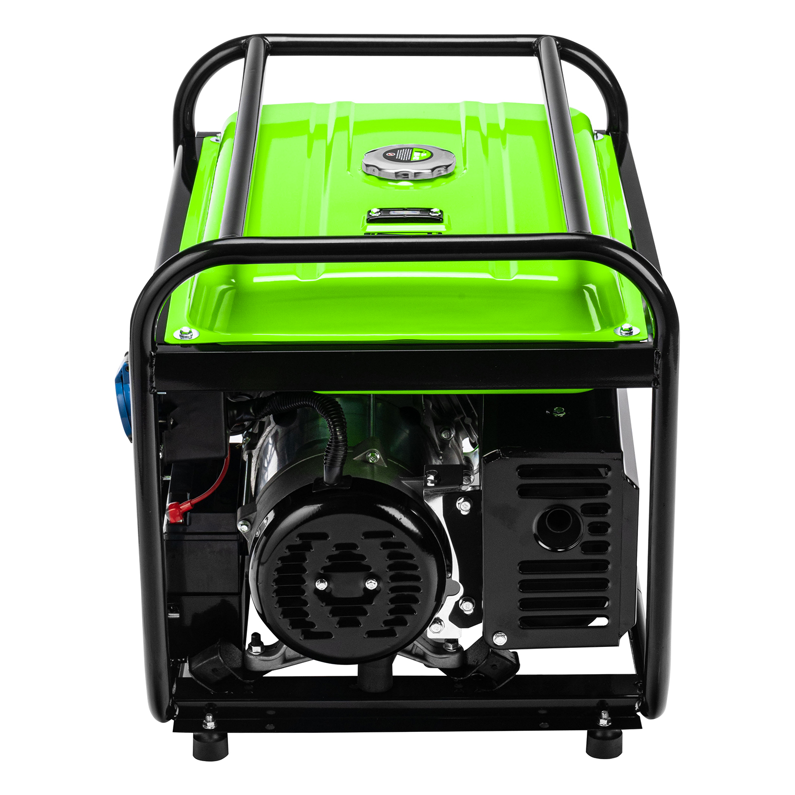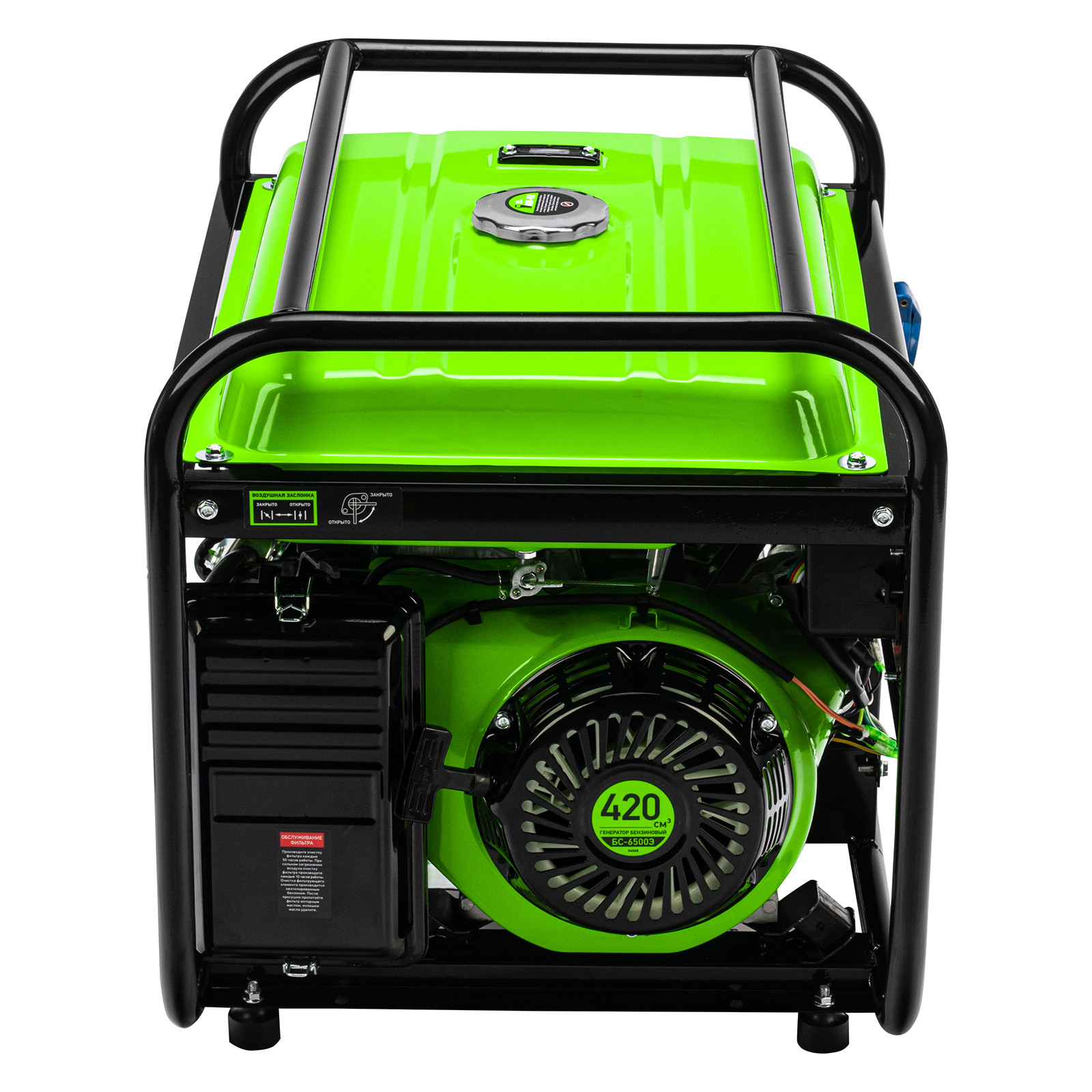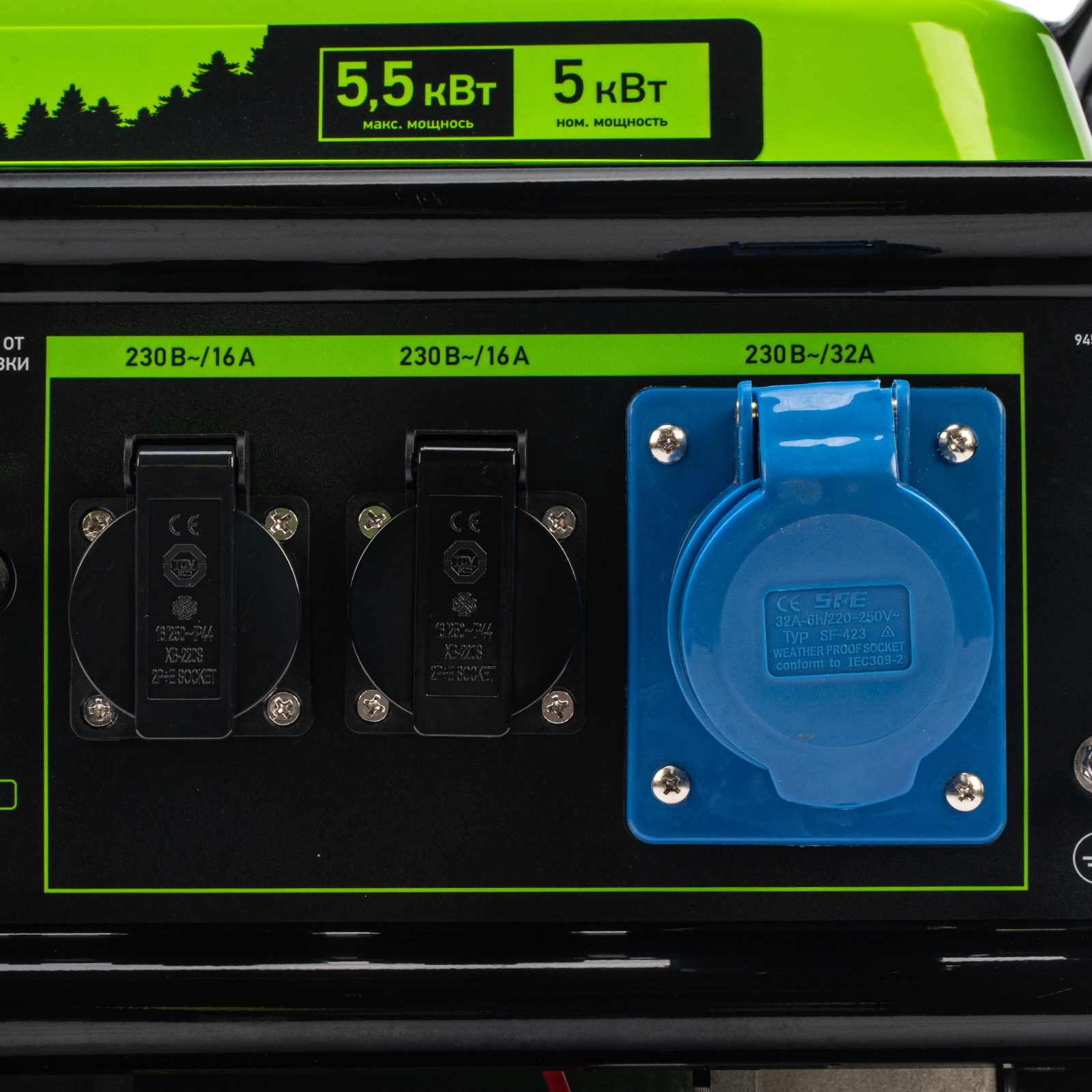 Бензиновый генератор Сибртех БС-6500Э 94548 максимальной мощностью 5,5 кВт, с 4-тактным двигателем, электростартером и баком объемом 25 л, выдает напряжение 230 В и используется для электроснабжения на даче, на строительной площадке, в магазине, в мастерской или гараже.