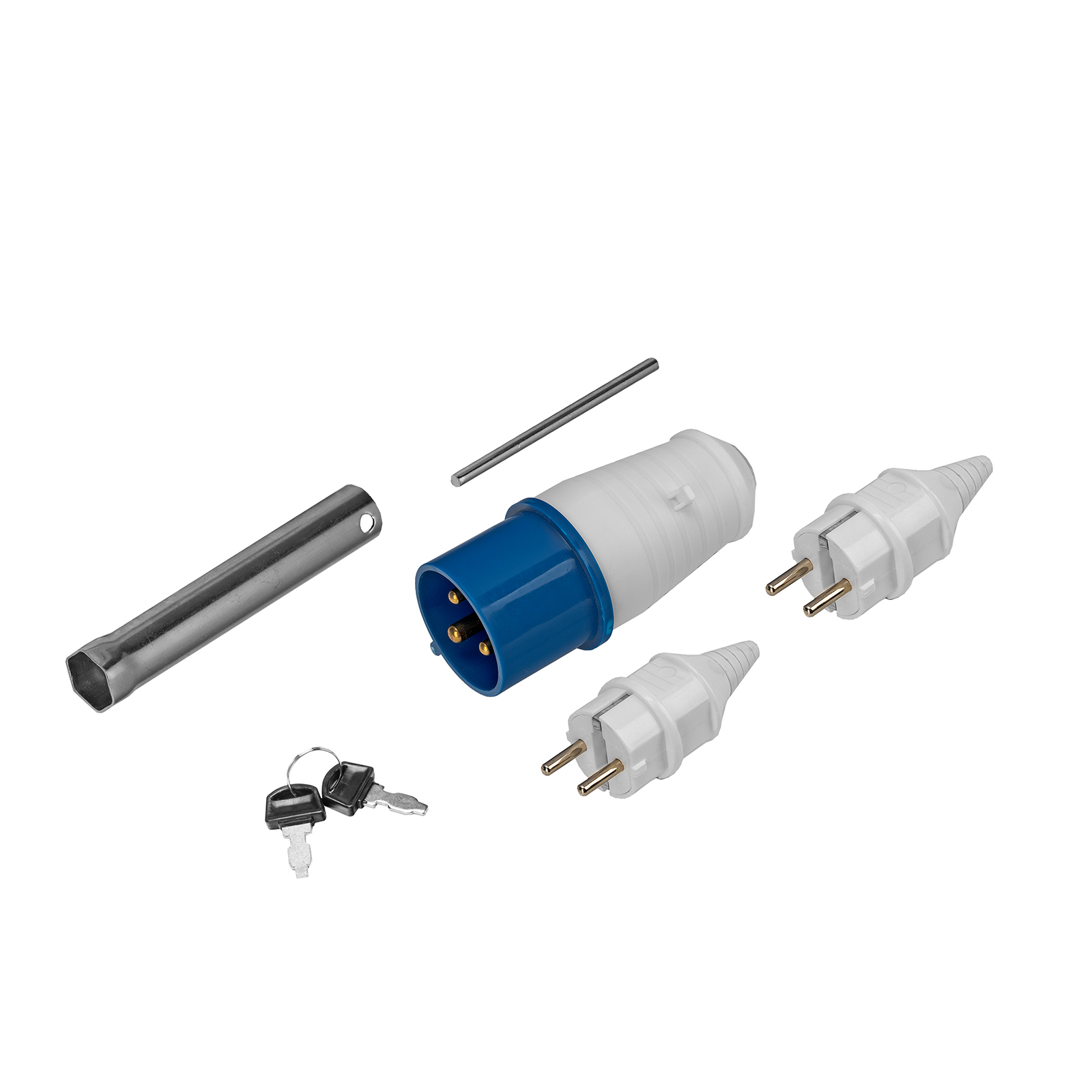 Комплектация Генератор - 1 шт, Ключ зажигания - 2 шт, Ключ свечной - 1 шт, Вилка 230В/16А - 2 шт, Вилка 230В/32А - 1 шт, Руководство по эксплуатации с гарантийным талоном - 1 шт