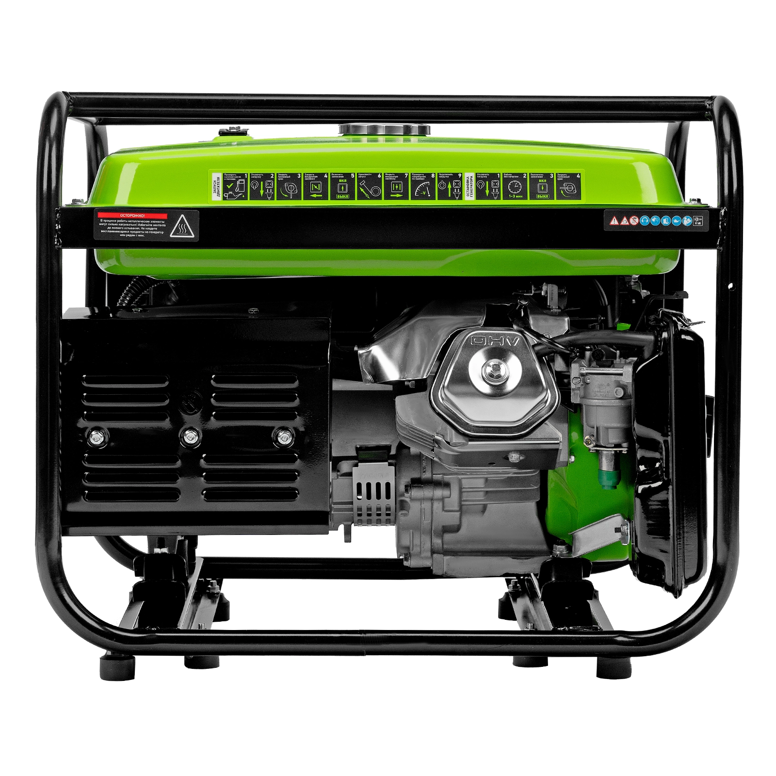 Прочная конструкция — стальная рама надежно защищает генератор от повреждений.