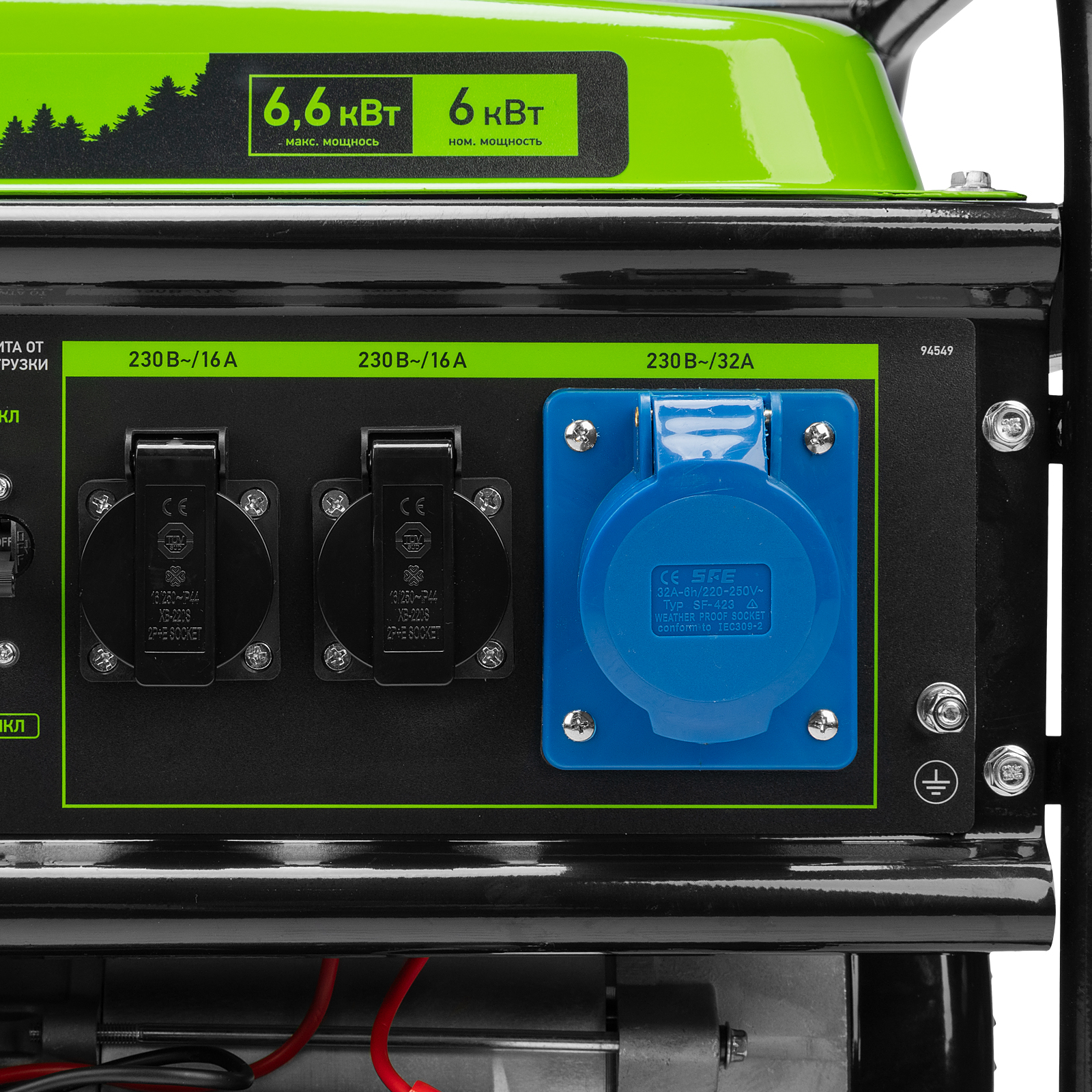 Благодаря мощности 6,6 кВт и наличию силовой розетки способен обеспечить бесперебойную работу нескольких потребителей одновременно, например, электрической плиты, холодильника, 5 ламп накаливания.