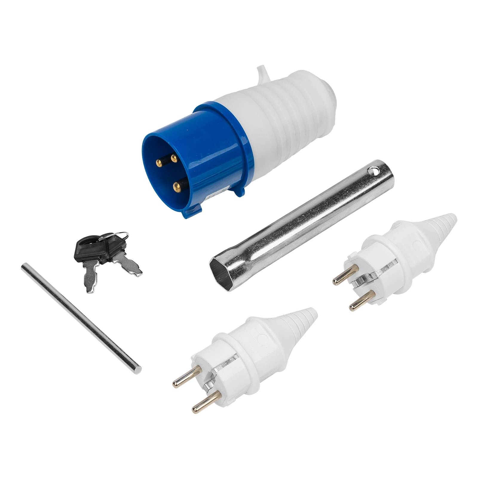 Комплектация Генератор - 1 шт, Ключ зажигания - 2 шт, Ключ свечной - 1 шт, Вилка 230В/16А - 2 шт, Вилка 230В/32А - 1 шт, Руководство по эксплуатации с гарантийным талоном - 1 шт