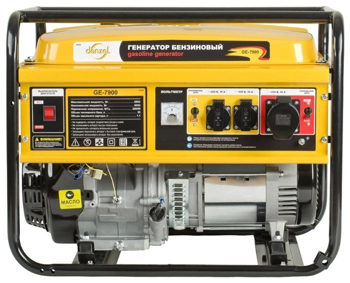 ПроизводителиГенератор бензиновый GE-7900, 6,5 кВт, 220В/50Гц, 25 л, ручной старт Denzel