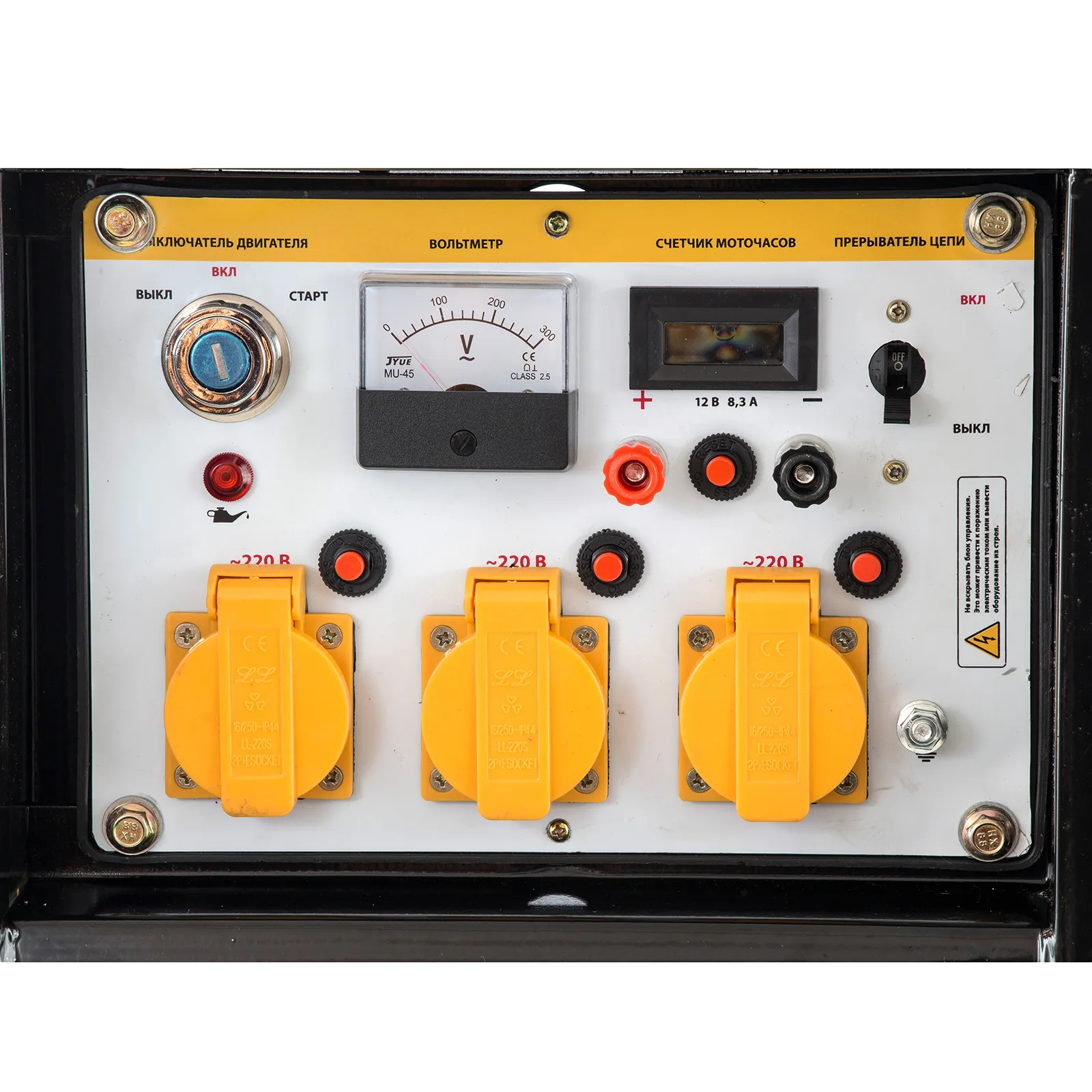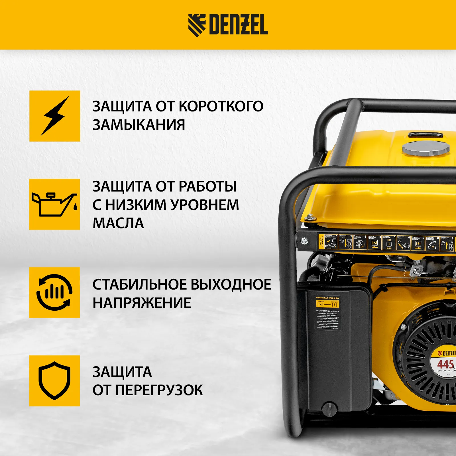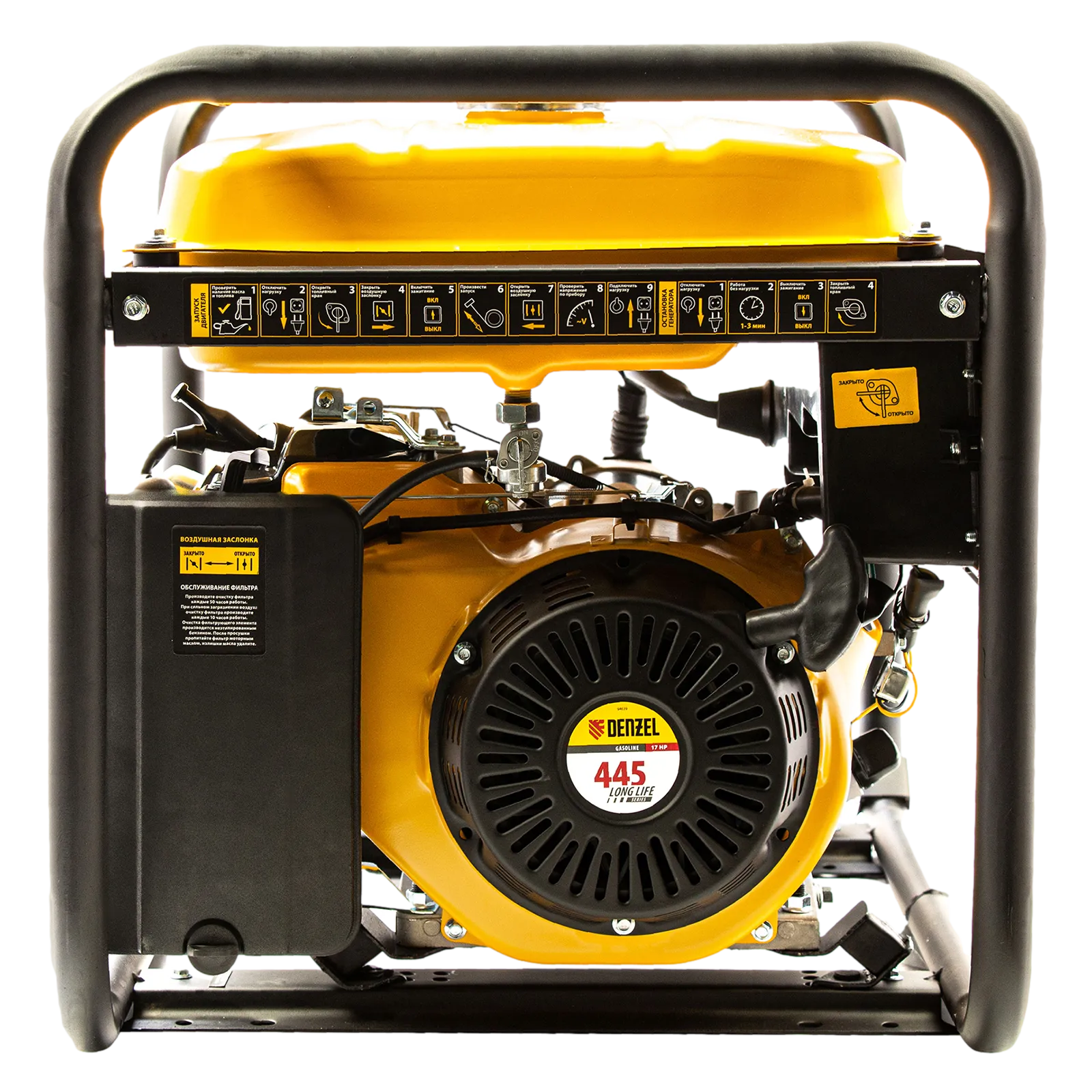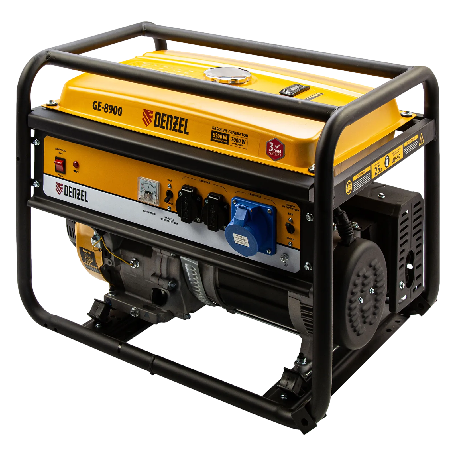 Бензиновый генератор Denzel GE 8900 94639, 220 В / 50 Гц, с баком на 25 л и ручным стартом, вырабатывает 8,5 кВт и способен обеспечить электричеством большой загородный дом, магазин или строительную площадку.