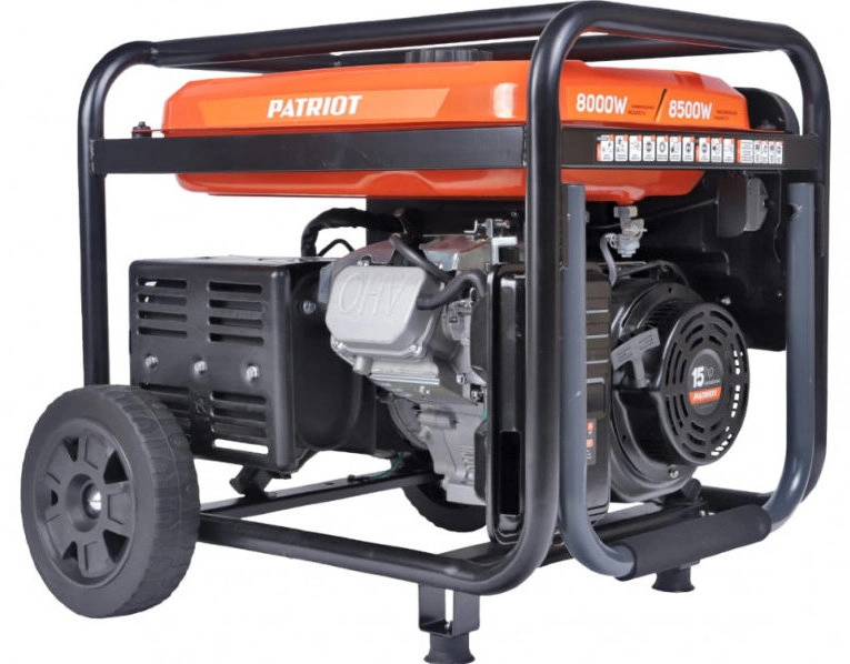 ПРОФИУровень качества. При классификации продуктов, имеющих схожее наименование, но обладающие различными потребительскими свойствами мы приняли следующий Вес факторов: 80% - подтвержденный ресурс, 15% - заявленная производительность/скорость, 5% - субъективные ощущения потребителя. ПодробнееКод товара: 0074388(0)ХарактеристикиАртикул 472102185Бренды PATRIOTСтрана производства КитайГарантия 12 месяцевГабариты (ШхВхГ),мм 720х660х670Тип бензиновыйРасход топлива, л/час 3,5Объем топливного бака, л 25Мощность, л.с. 15Число оборотов холостого хода 3000Цвет оранжевый/черныйКоличество розеток 4Материал корпуса металлСтепень защиты IP21Объём двигателя 457Двигатель/Тактность 4-х тактныйМетод изготовления корпуса открытыйНапряжение 230 / 12Объем масляного бака, л 1,1Тип топлива бензин АИ-92Стартер Ручной, электро, автозапуск + АКБСвеча зажигания F7ТС, F7RTCОхлаждение воздушноеВоздушный фильтр поролоновый картриджНаличие дисплея естьЗащита от перегрузки 2405Индикатор уровня топлива ДаОбъем масляного картера, л 1,1Выход на 12B есть, прикуривательЧастота, Гц 50Количество цилиндров 1Масляный фильтр нетТип альтернатора синхронныйСчетчик моточасов даДатчик уровня масла естьАвтозапуск подготовленРегулятор напряжения AVRАккумулятор в комплекте даКомплект для транспортировки естьСила тока розеток 2х230В,16А / 1х230В,32А / 1х12ВАльтернатор СинхронныйВес 100Тип генератора синхронныйКонструкция двигателя четырехтактныйИсполнение открытоеЁмкость топливного бака 25Частота напряжения 60Число фаз 1Максимальная активная мощность 8.5Запуск автозапуск, ручной, электростартерВес 100Номинальная активная мощность 8Расход топлива 3.5Глушитель ДаКоличество розеток 4Индикатор уровня масла ДаВремя работы на полном баке (при нагрузке 75%) 10Зарядка аккумуляторов (12В) ДаКоличество цилиндров 1Количество колёс 2Число оборотов 3000Количество розеток 12 В 1Количество розеток 220 В 3Используемое топливо бензинСила тока 32Нескользящие ножки ДаОписание товара обновлено 08.12.2025 14:47:51Мощный бензиновый генератор с возможностью подключения блока автоматики, применяется в качестве резервного или автономного источника питания. Вместительный бак и экономных расход топлива обеспечат до 10 часов беспрерывной работы. Двигатель "Hemi-Head" гарантирует лучшее сгорание топлива, выдает больше мощность по сравнению с обычным OHV двигателем. Надежный регулятор напряжения AVR и медная обмотка альтернатора позволяют выдерживать кратковременные 3х кратные перегрузки для использования с мощным электроинструментом. Сварная рама и утопленная панель управления защищают элементы управления от механических повреждений. Розетки защищены от попадания пыли и влаги. Мультидисплей 6в1 для контроля основных параметров.