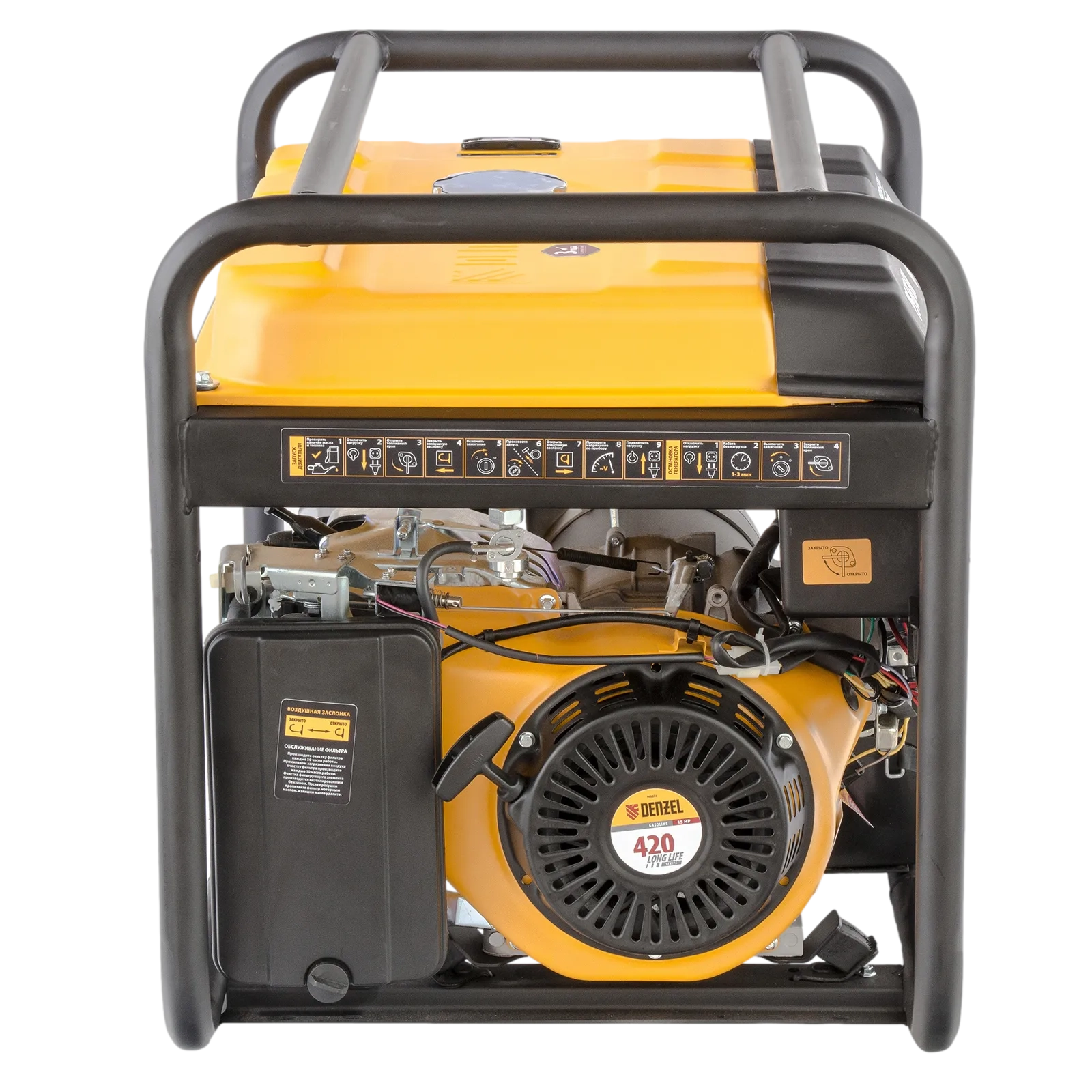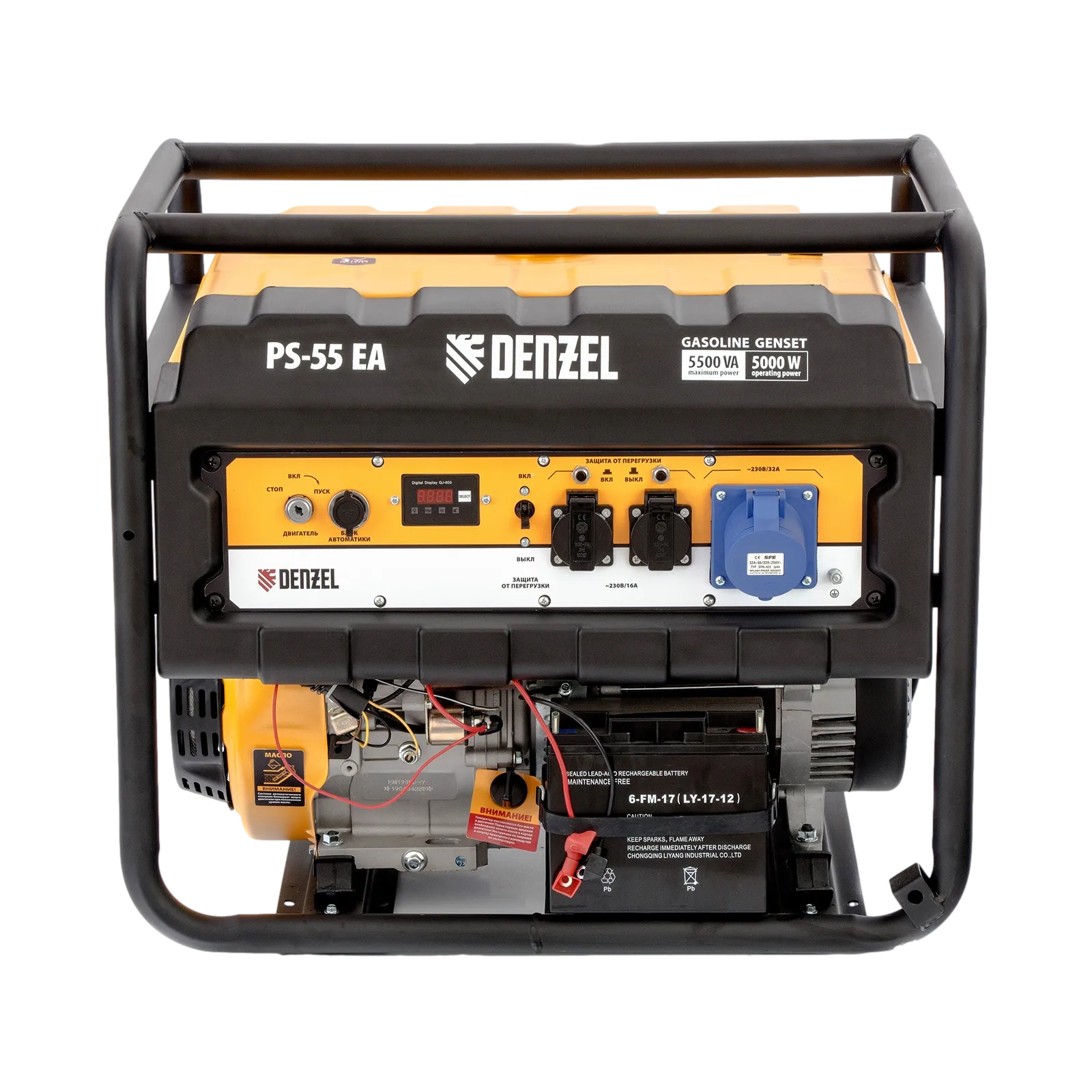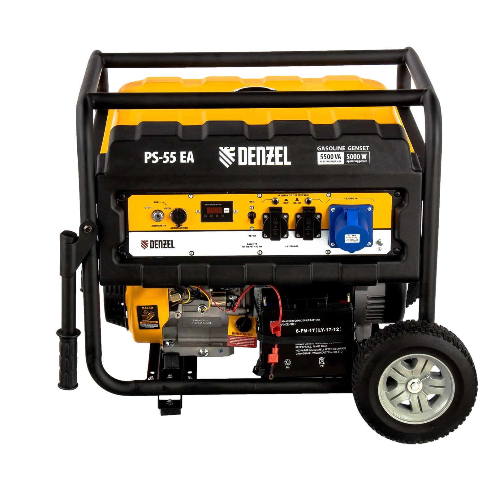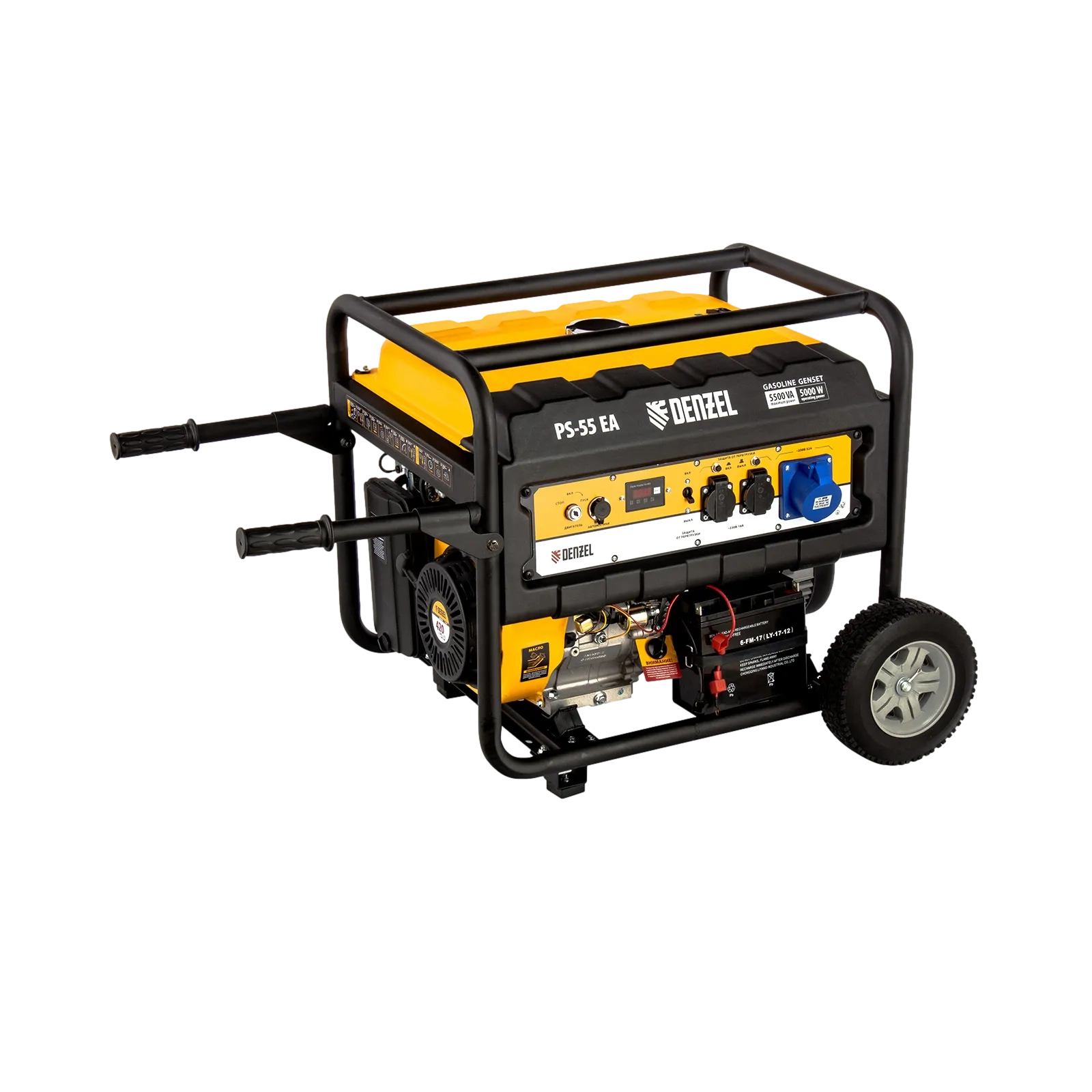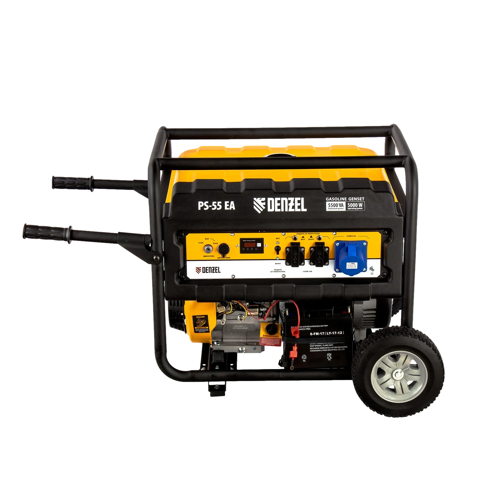 ПроизводителиГенератор бензиновый PS-55EA, 5,5 кВт, 230В, 25л, коннектор автоматики, электростартер Denzel