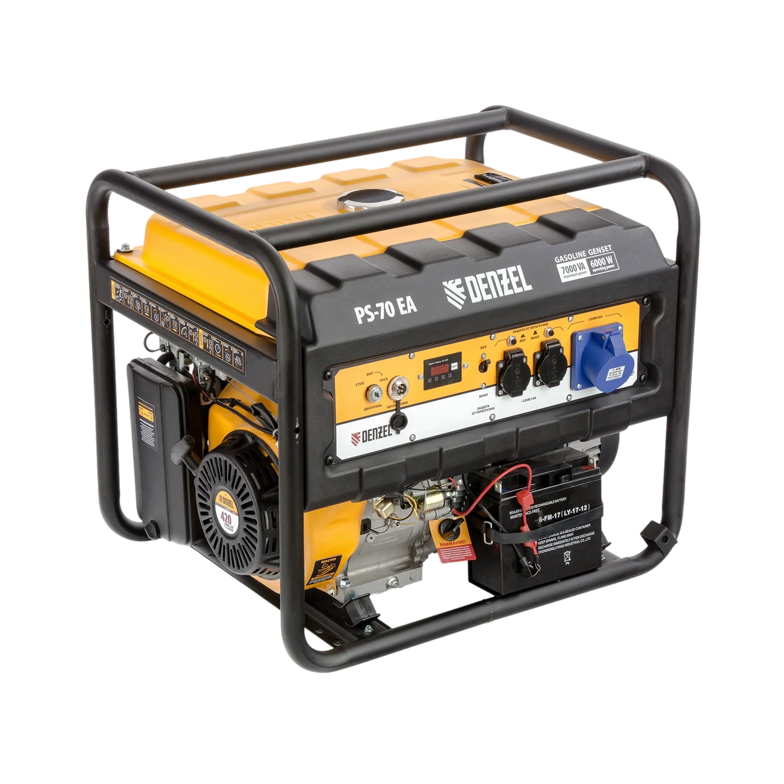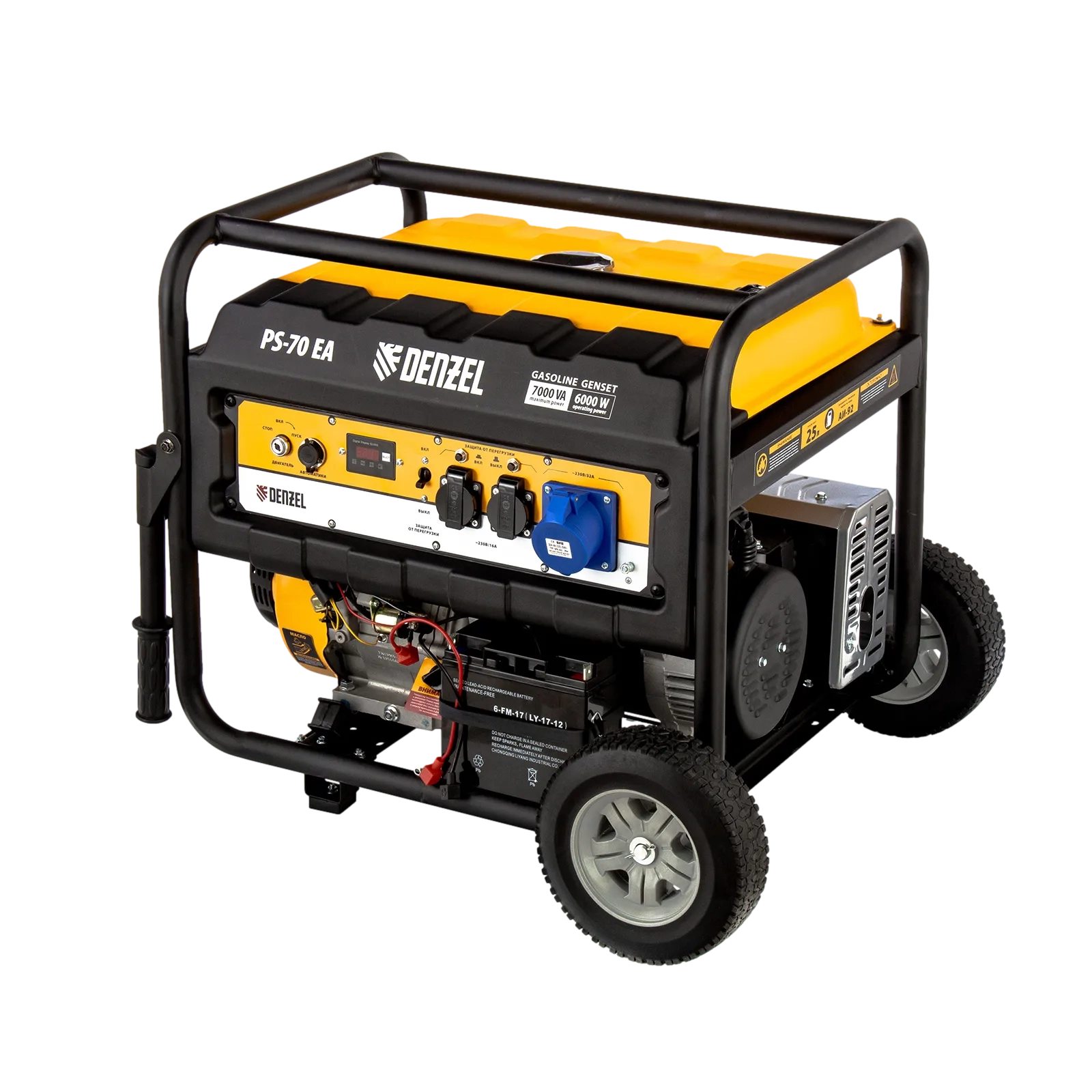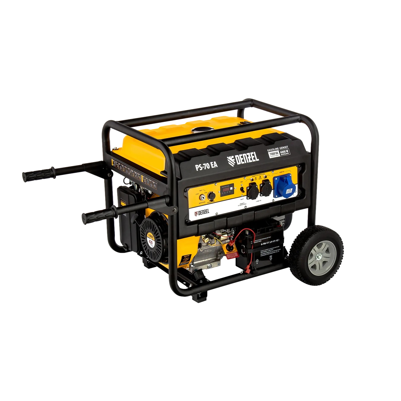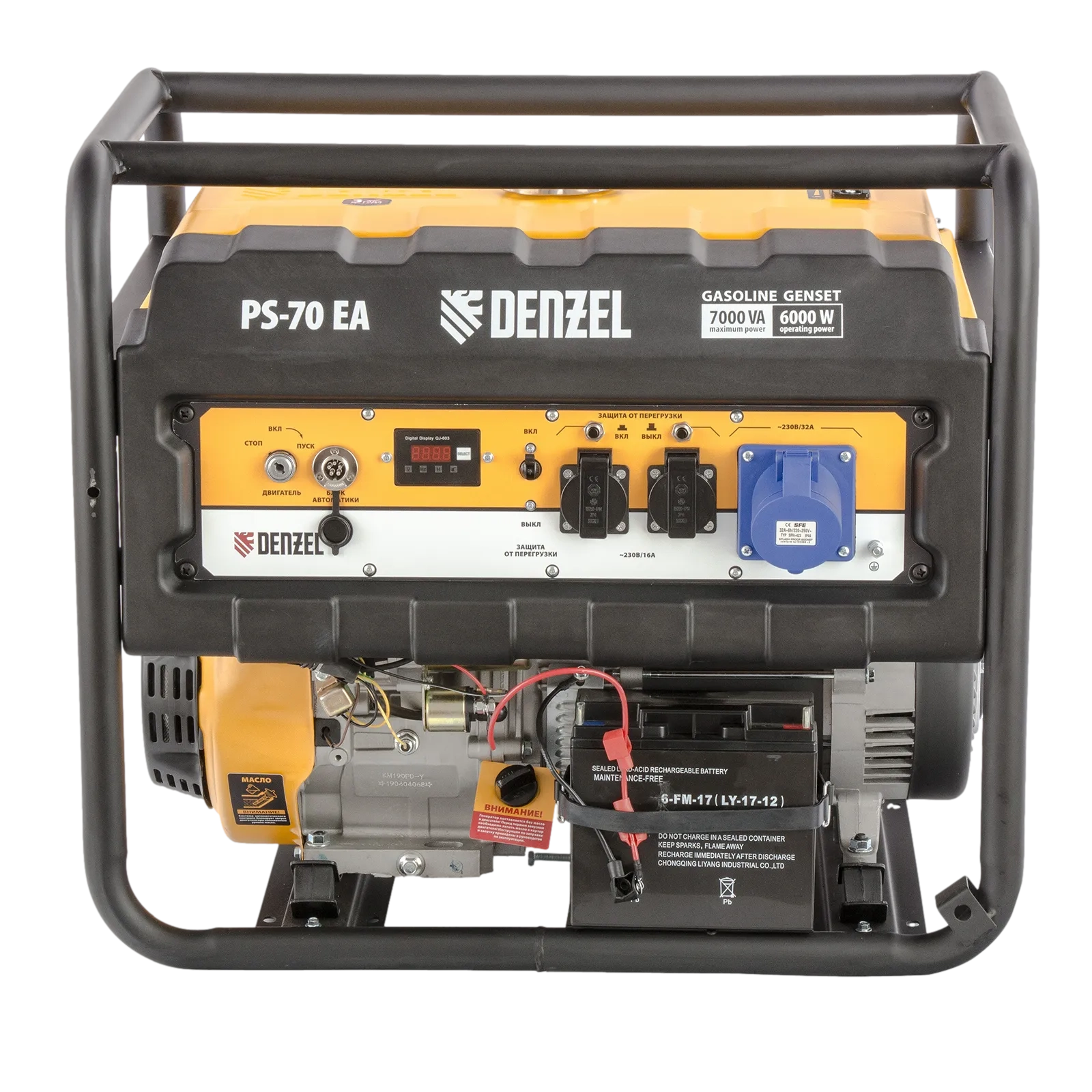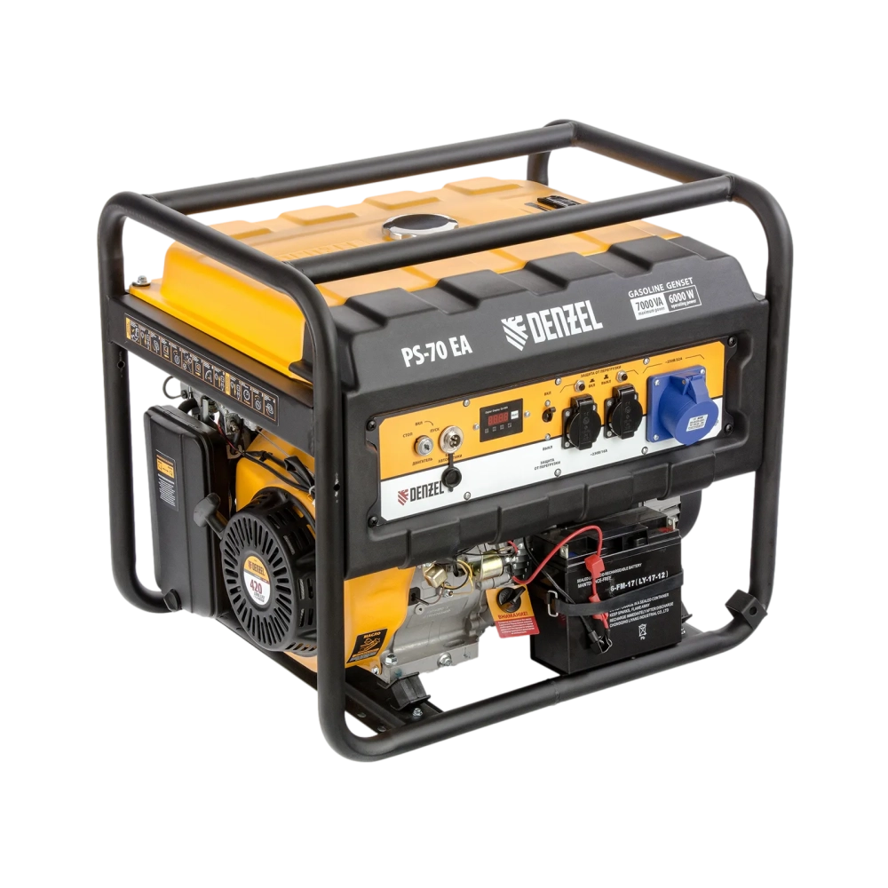 ПроизводителиГенератор бензиновый PS-70EA, 7,0 кВт, 230В, 25л, коннектор автоматики, электростартер Denzel