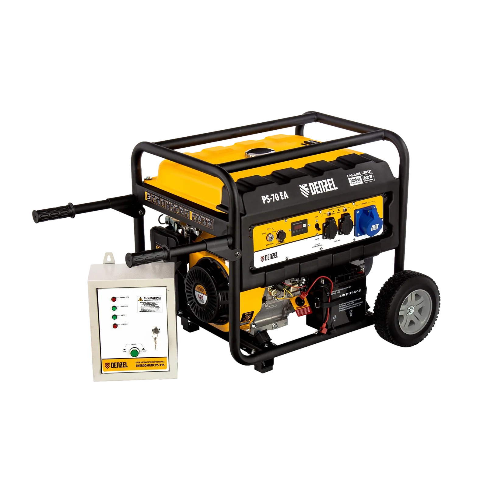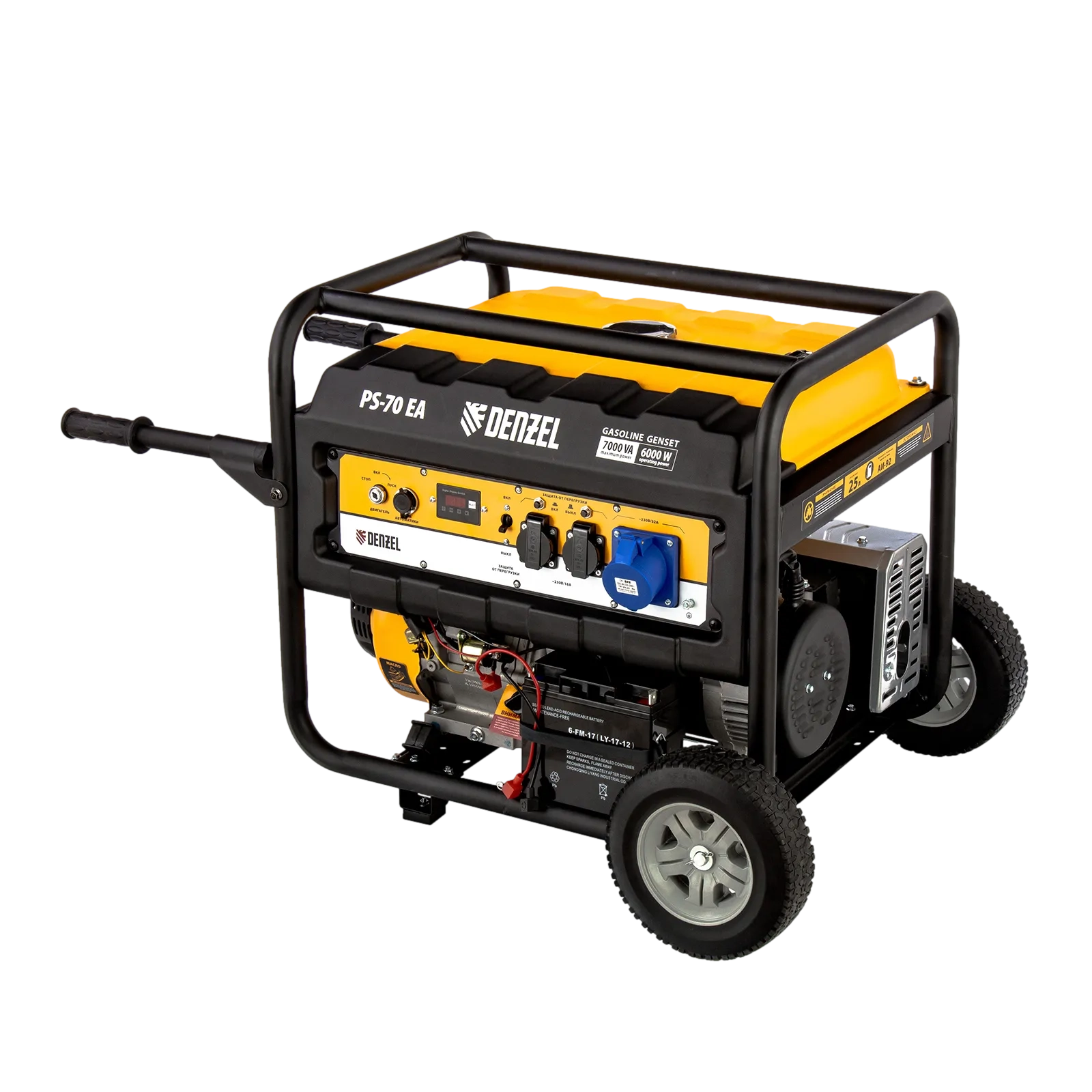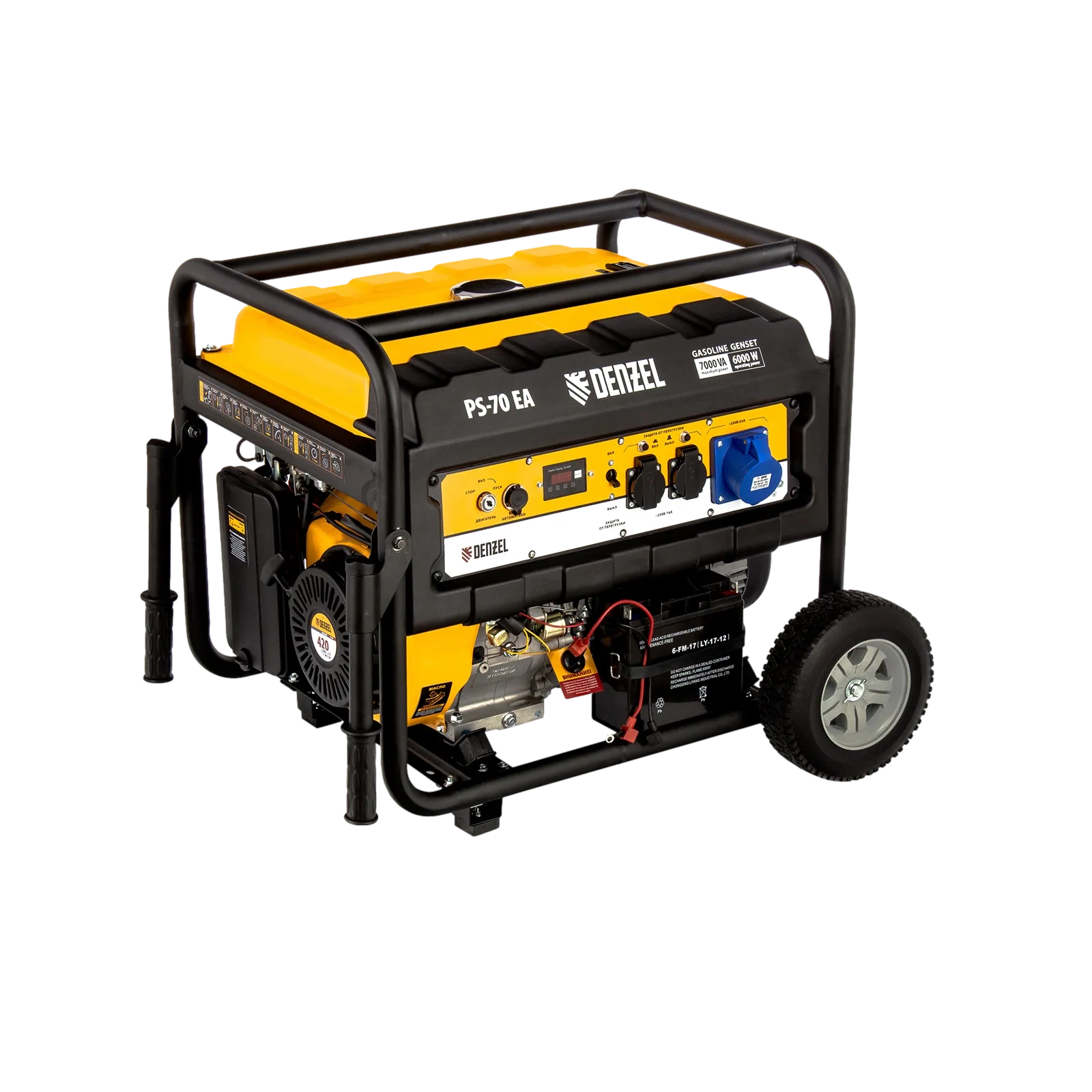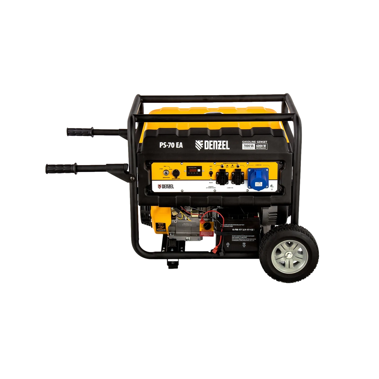 ПроизводителиГенератор бензиновый PS-70EA, 7,0 кВт, 230В, 25л, коннектор автоматики, электростартер Denzel