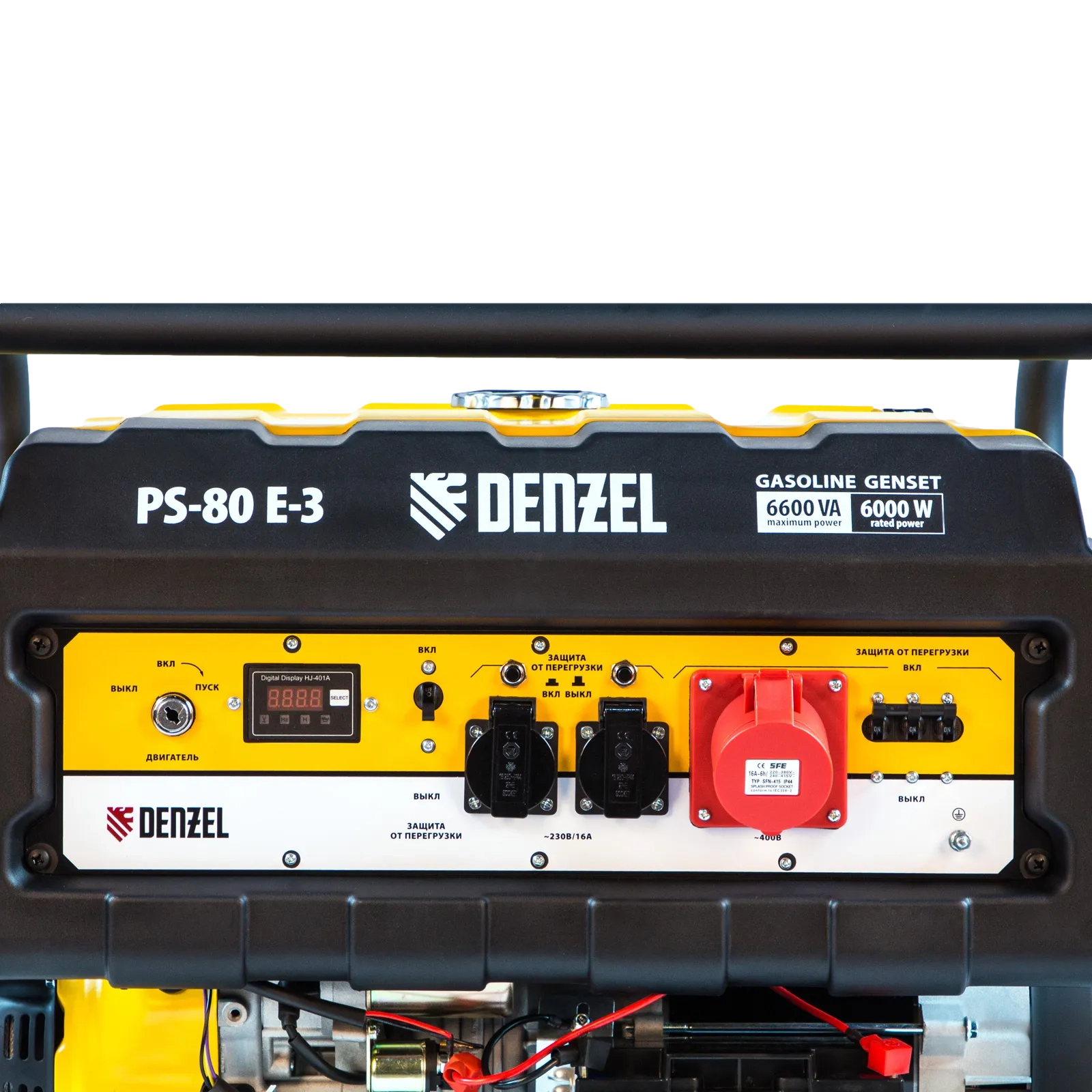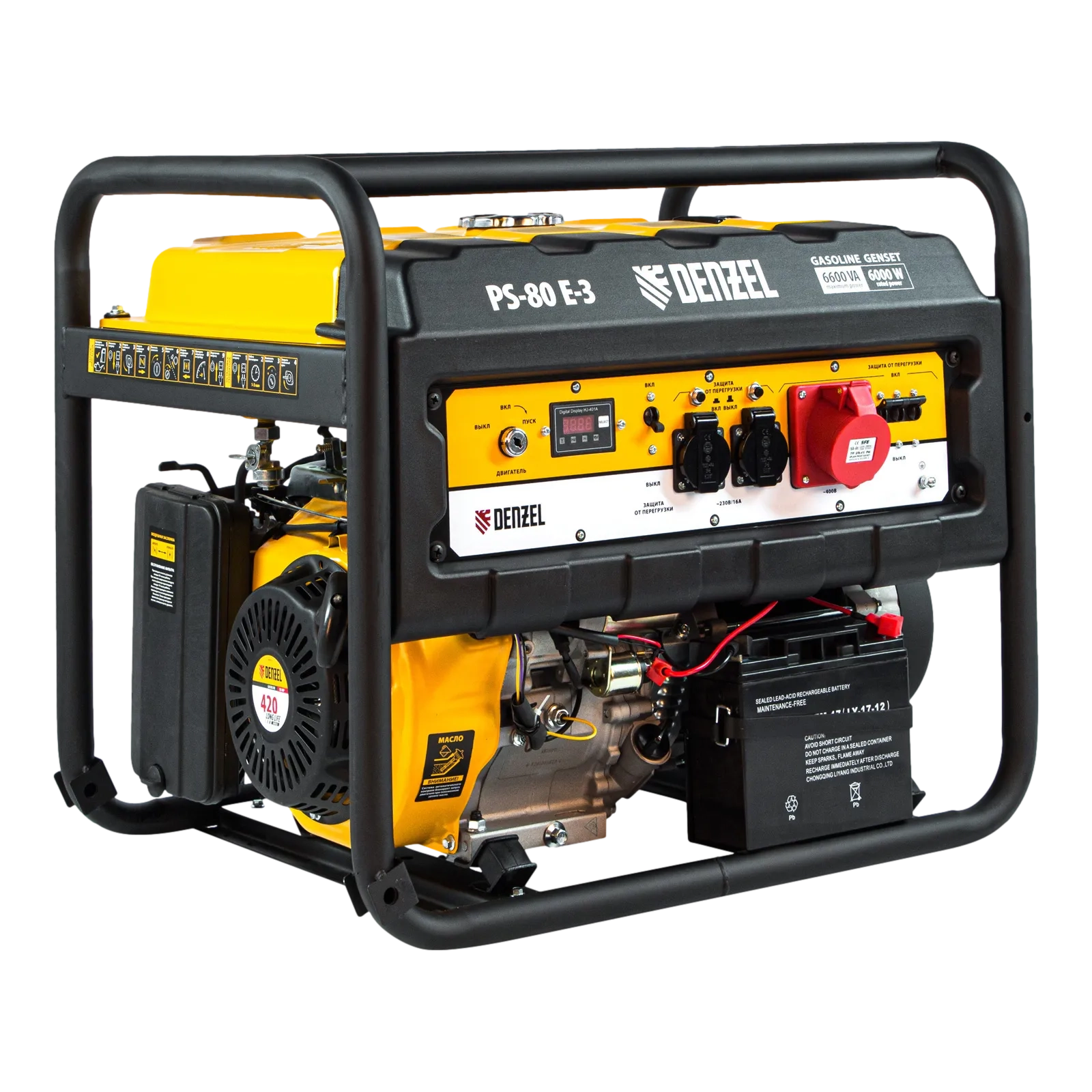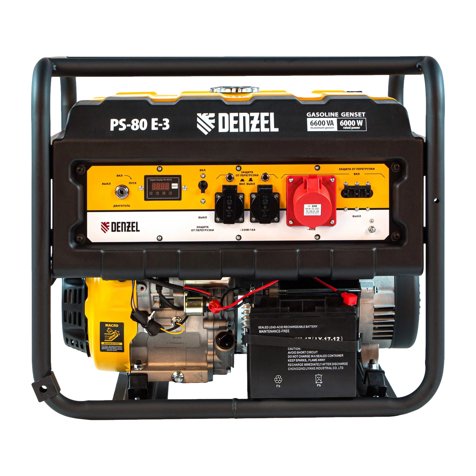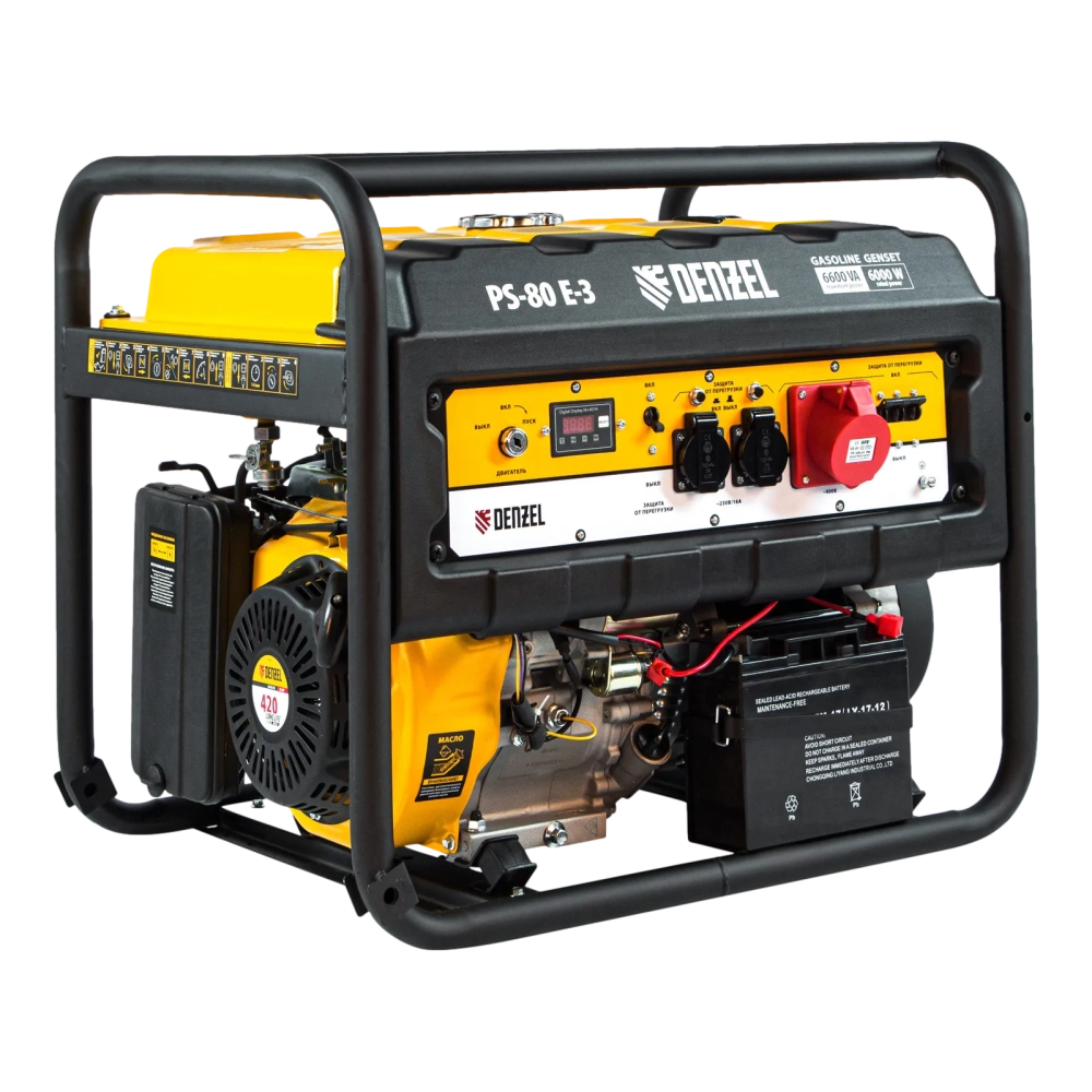 ПроизводителиГенератор бензиновый PS-80E-3, 6,6 кВт, 400В, 25л, электростартер Denzel
