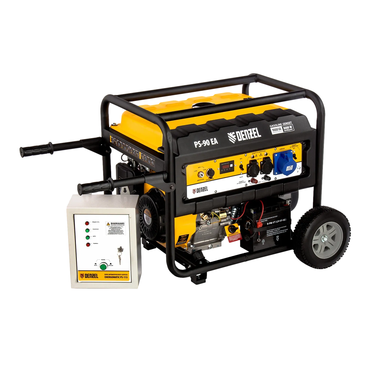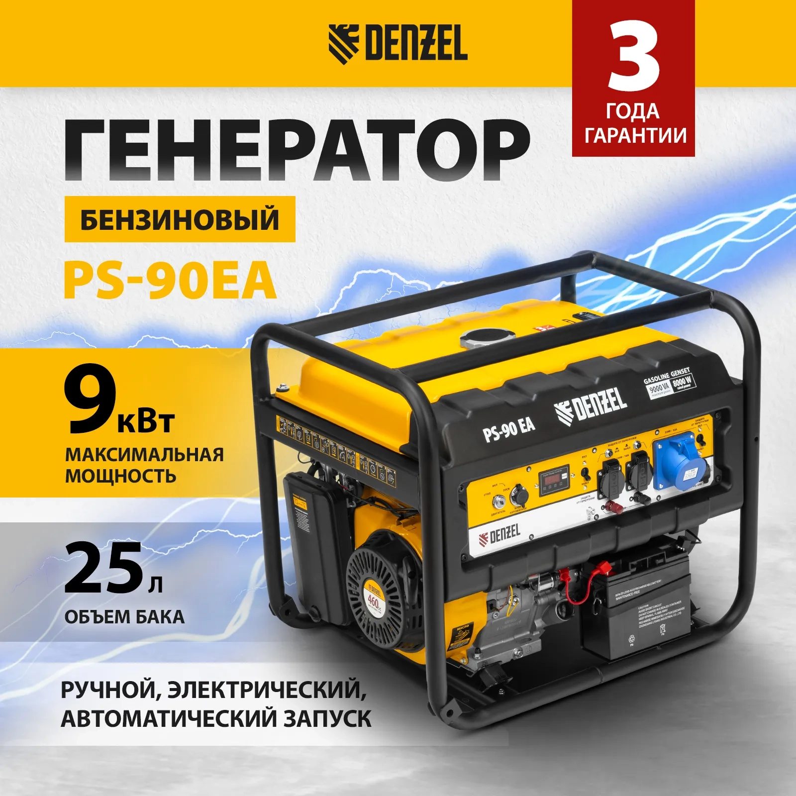ПроизводителиГенератор бензиновый PS-90EA, 9,0 кВт, 230В, 25л, коннектор автоматики, электростартер Denzel