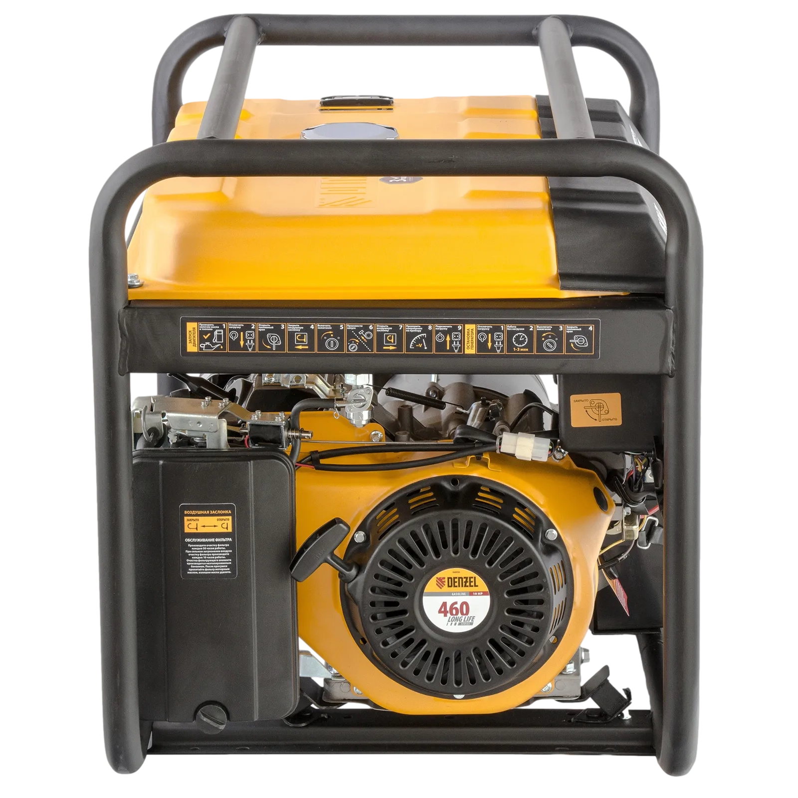 Может выдавать до 8 кВт номинальной мощности благодаря двигателю увеличенного объема denzel long life 460 см3.