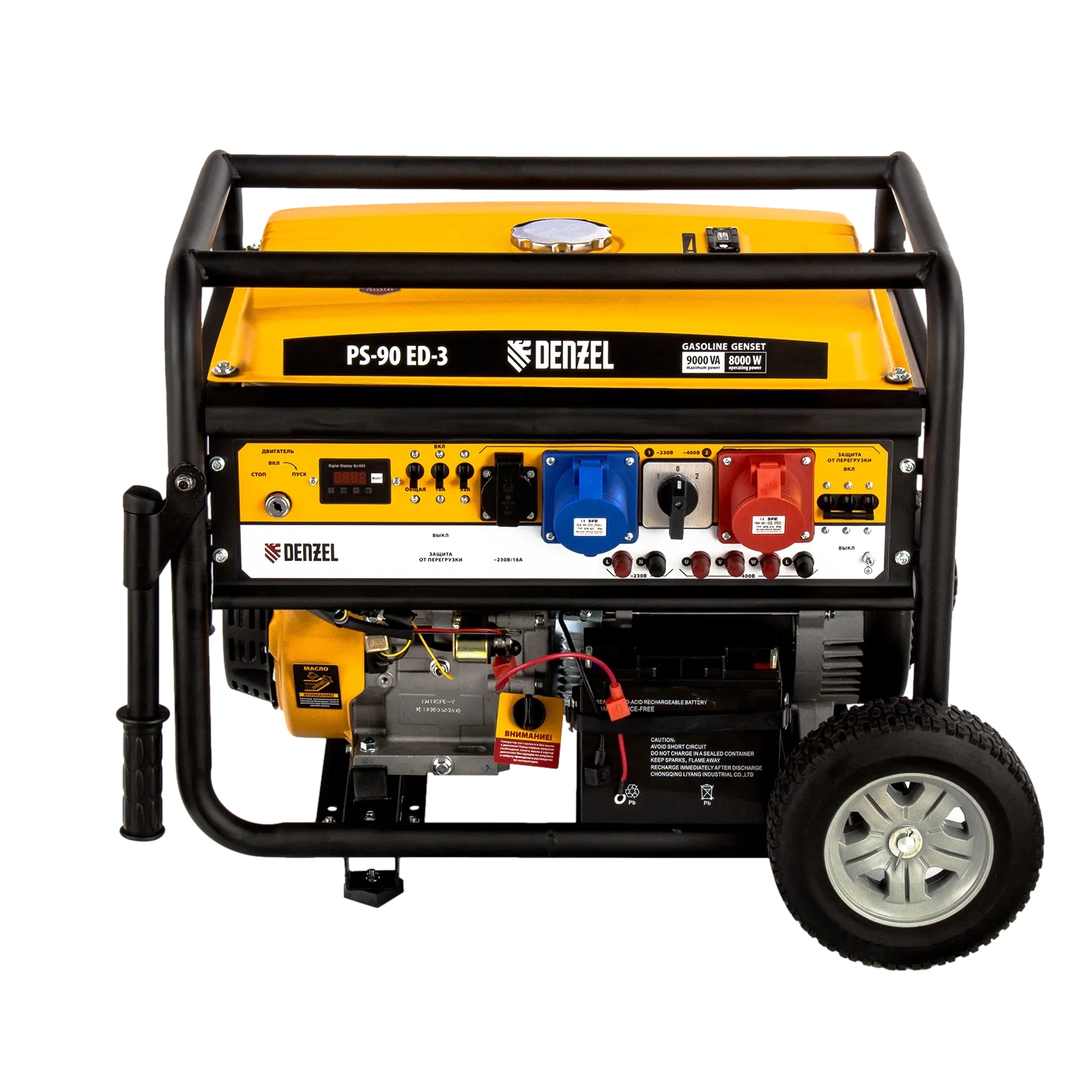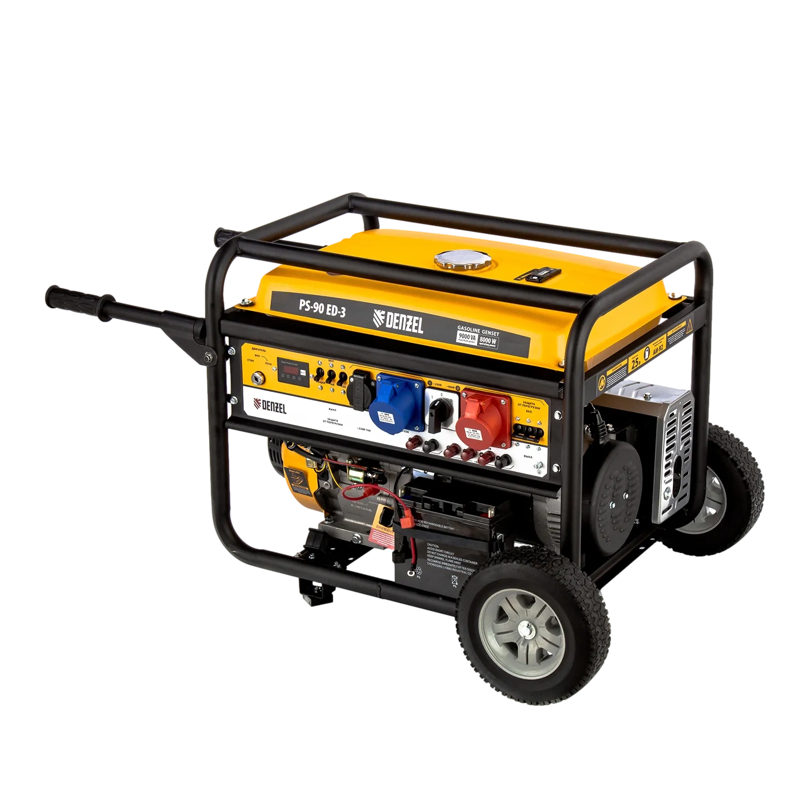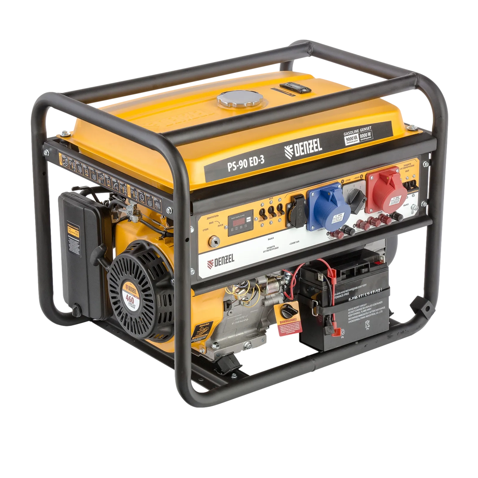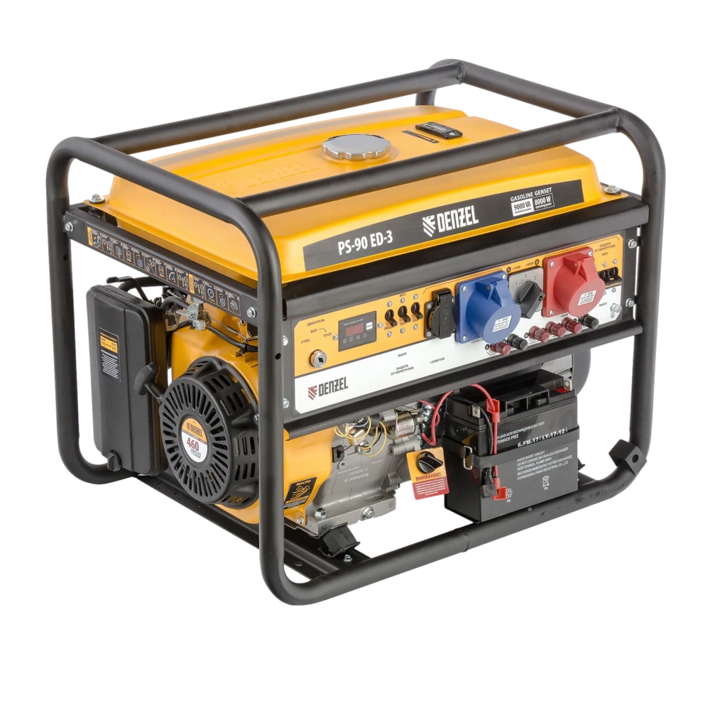 ПроизводителиГенератор бензиновый PS-90ED-3, 9,0кВт, переключение режима 230В/400В, 25л, электростартер Denzel