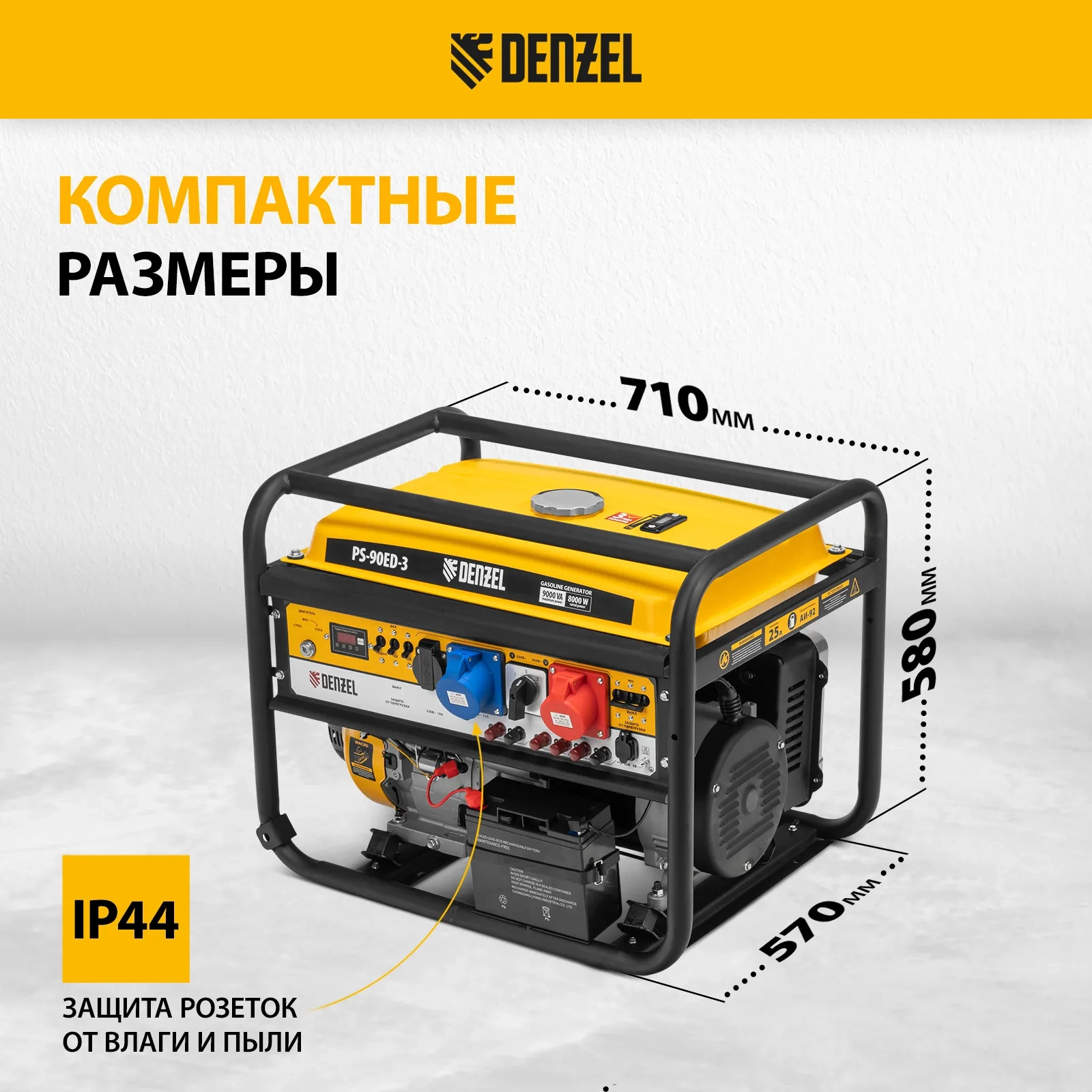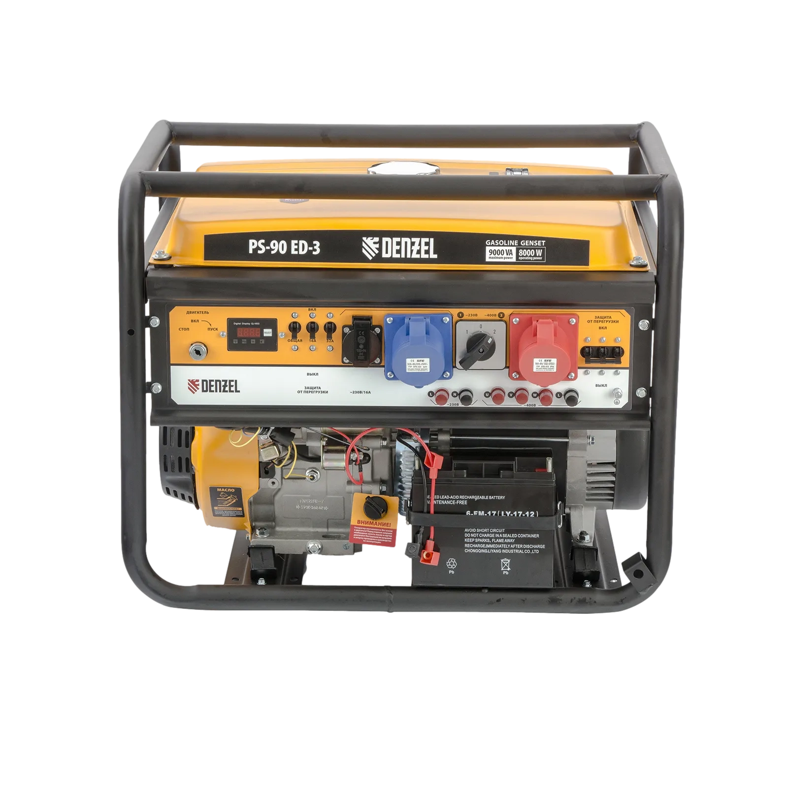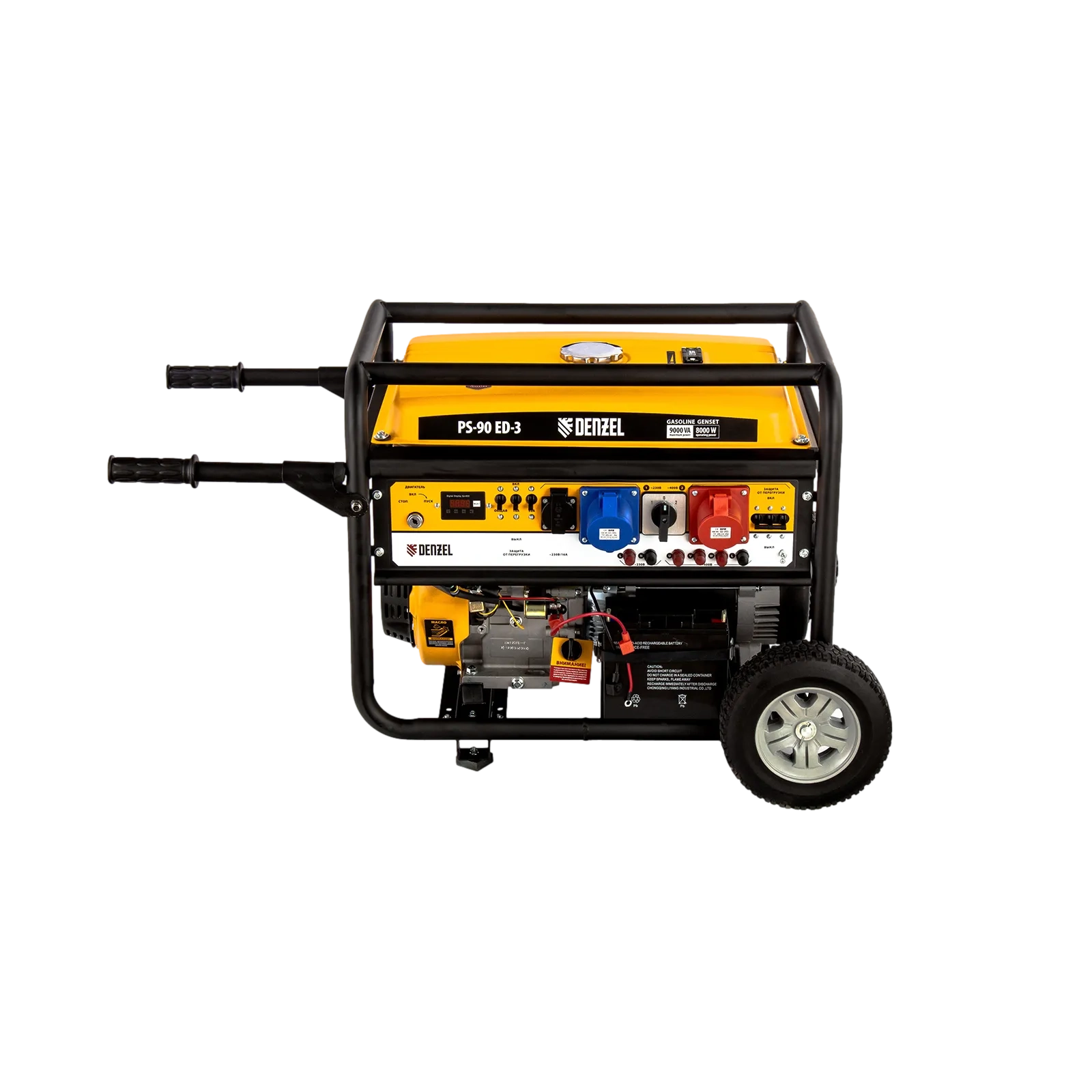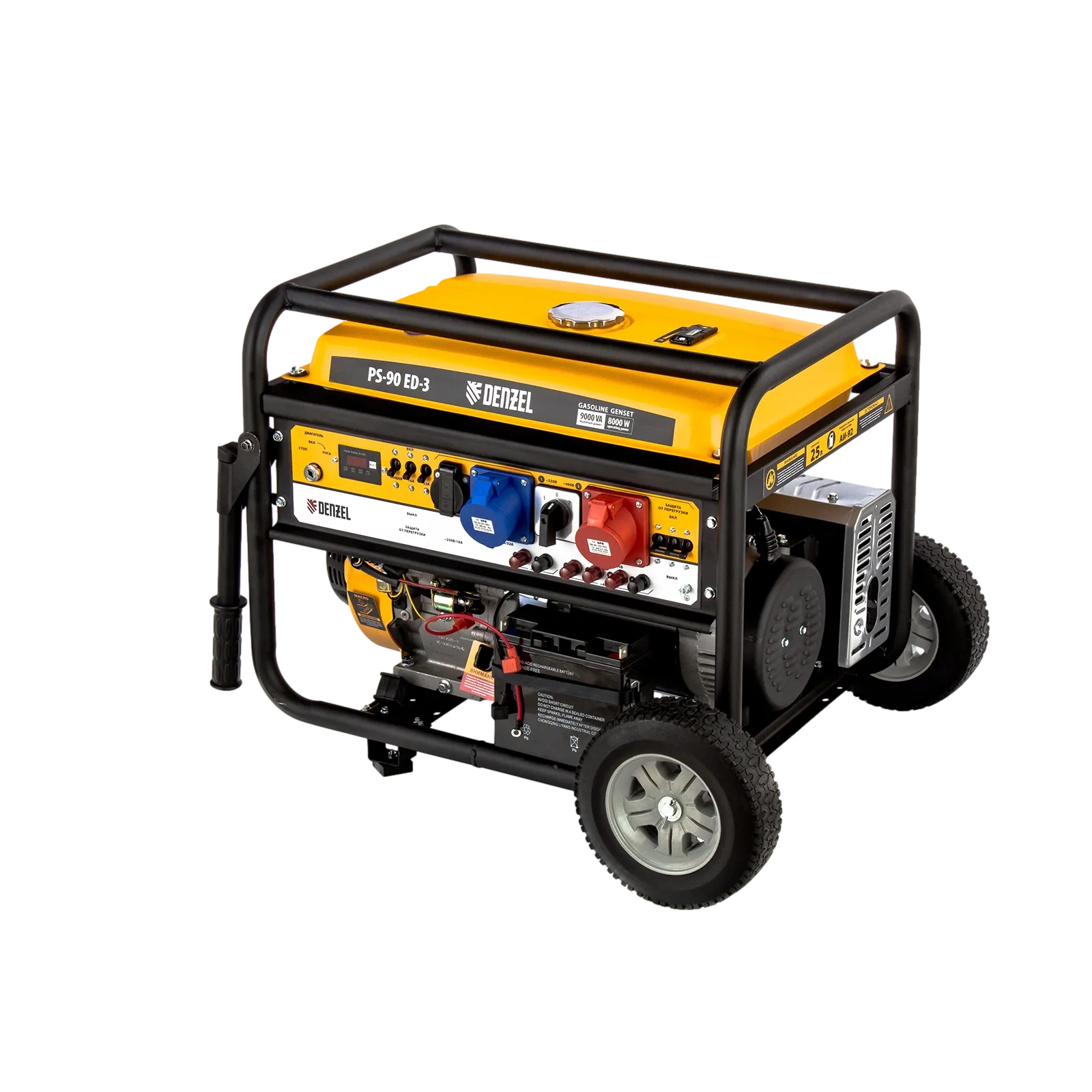 ПроизводителиГенератор бензиновый PS-90ED-3, 9,0кВт, переключение режима 230В/400В, 25л, электростартер Denzel