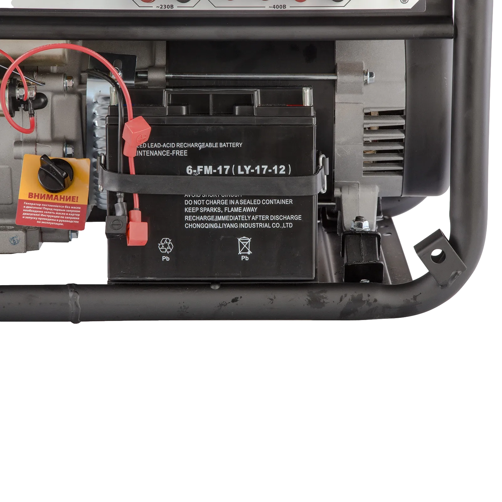 В комплект входит аккумулятор для электрозапуска - достаточно просто повернуть ключ, чтобы завести генератор.