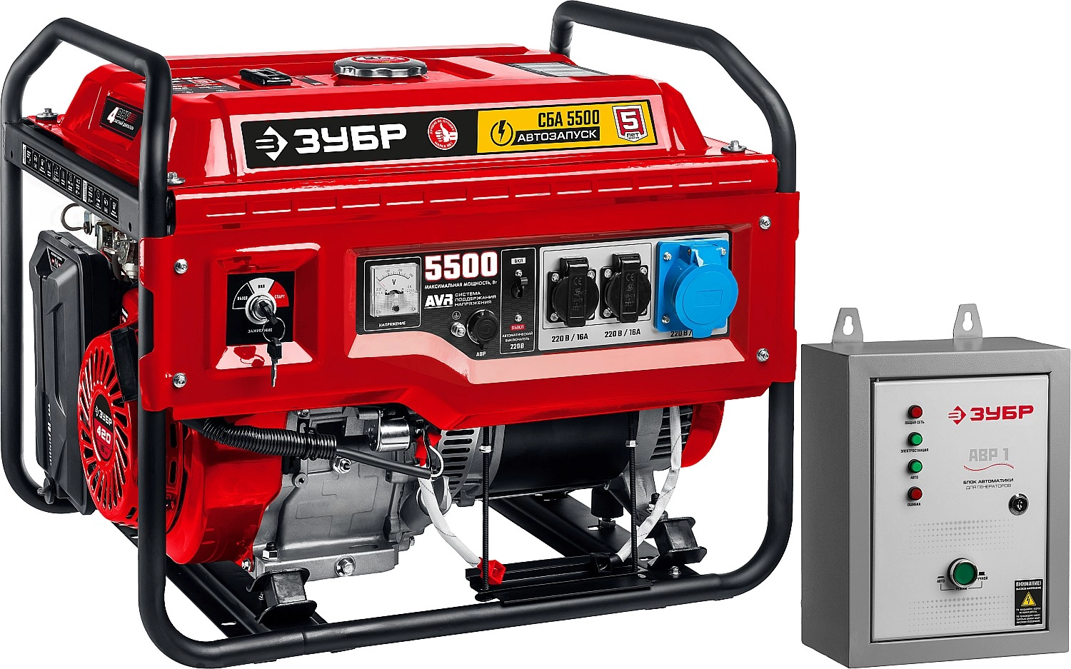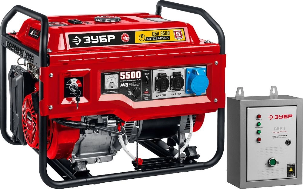 ПроизводителиГенератор бензиновый СБА-5500 (5500Вт, 220В, автозапуск) "МАСТЕР" ЗУБР