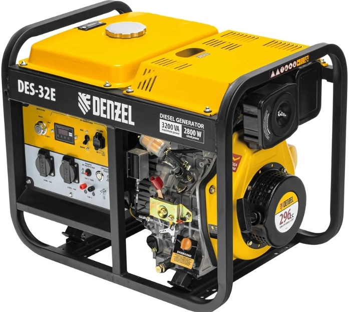 ПроизводителиГенератор дизельный DES-32E (3.2 кВт, 220В, 11л, розетка 2х230В/16А, 12В, электростартер) DENZEL